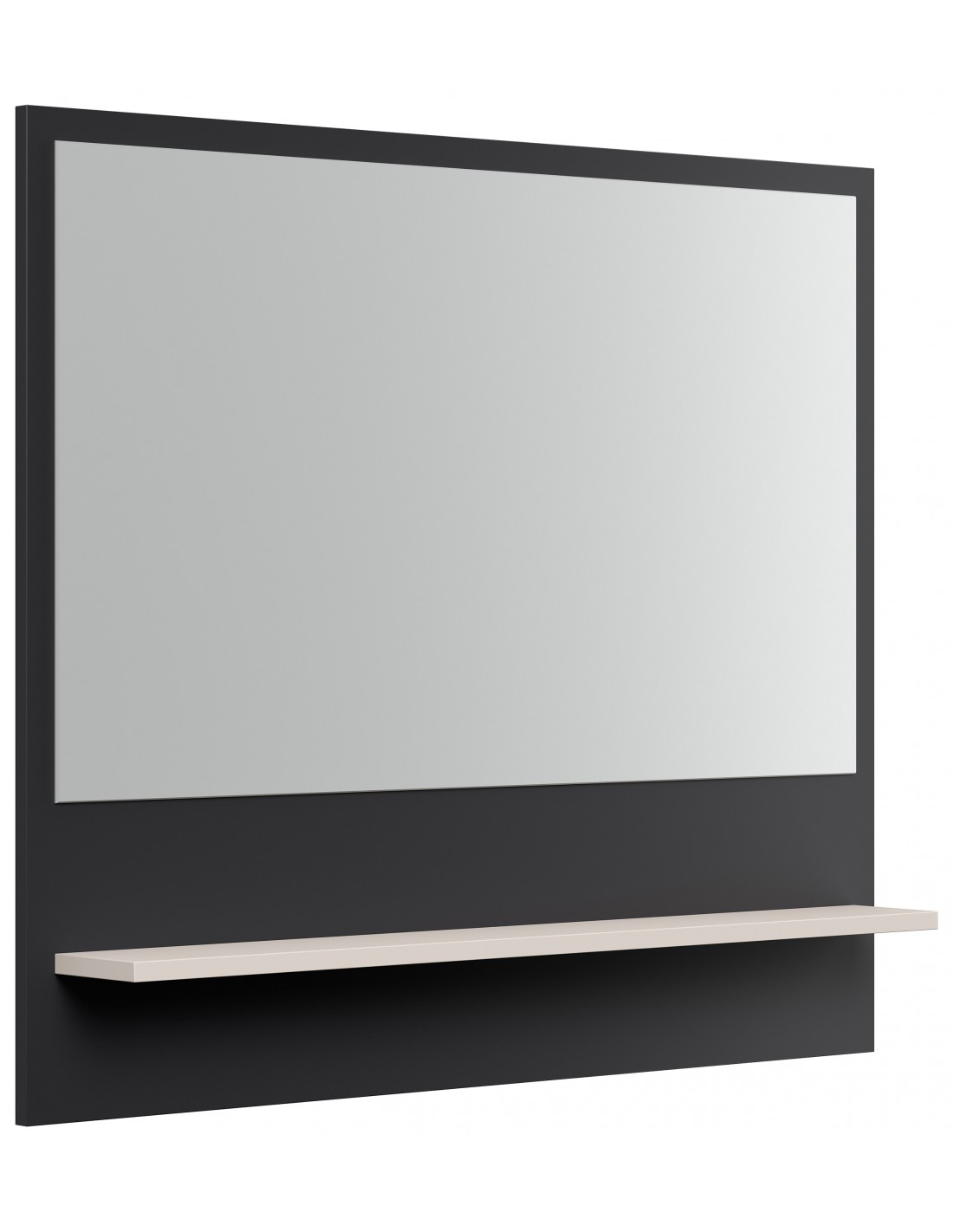 Vægspejl med hylde i mdf og glas H90 x B104,9 cm - Grafitgrå/Creme