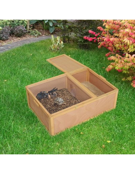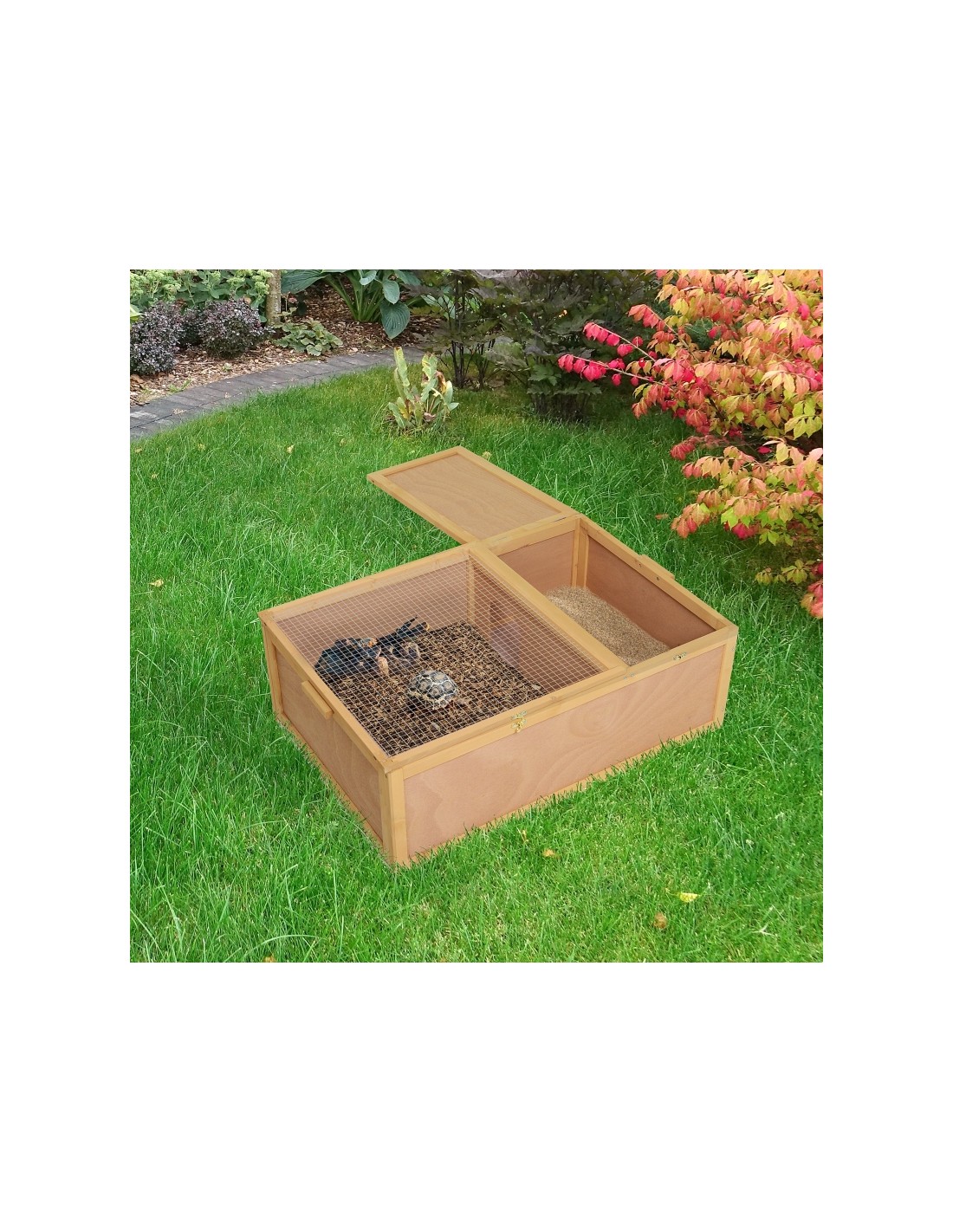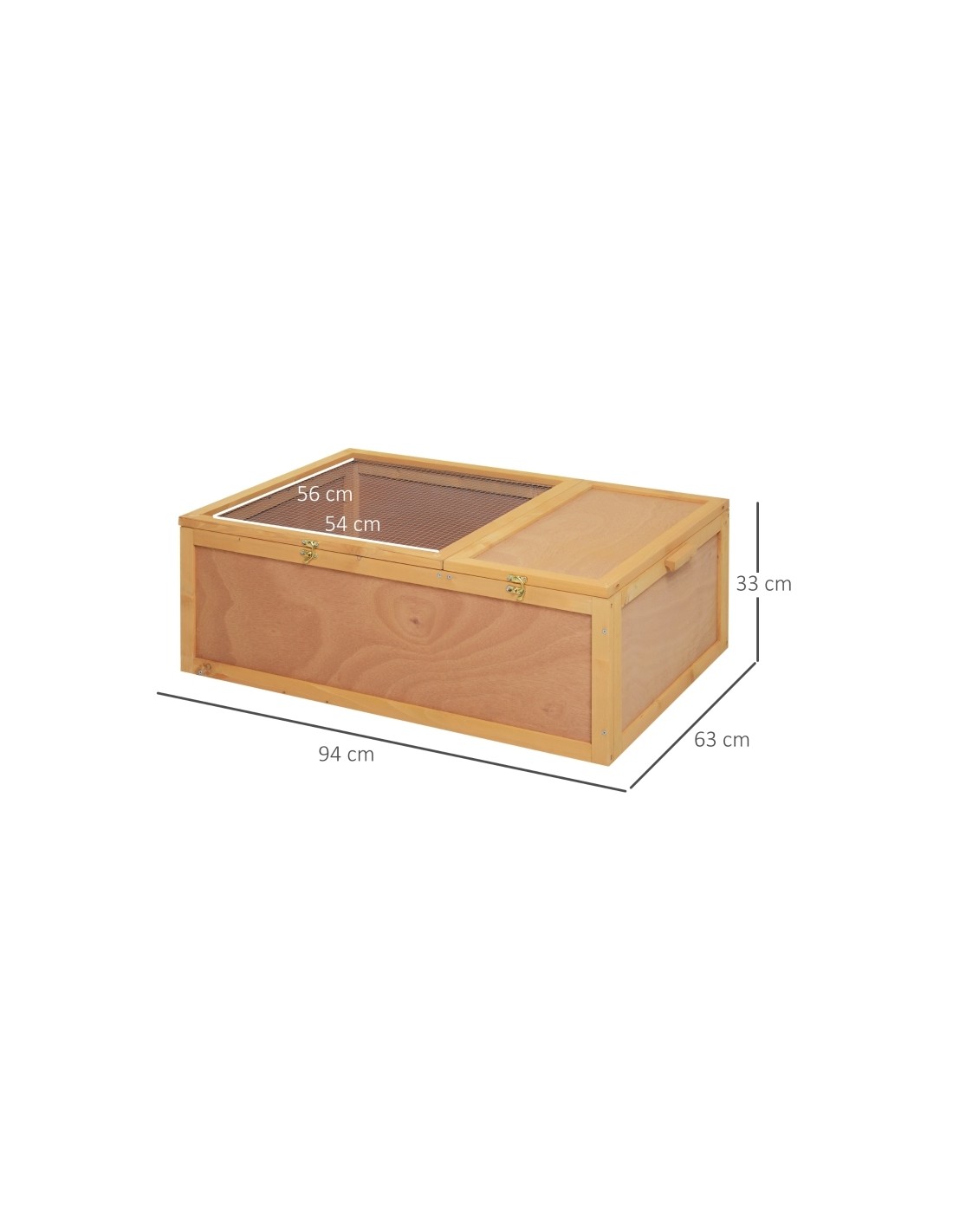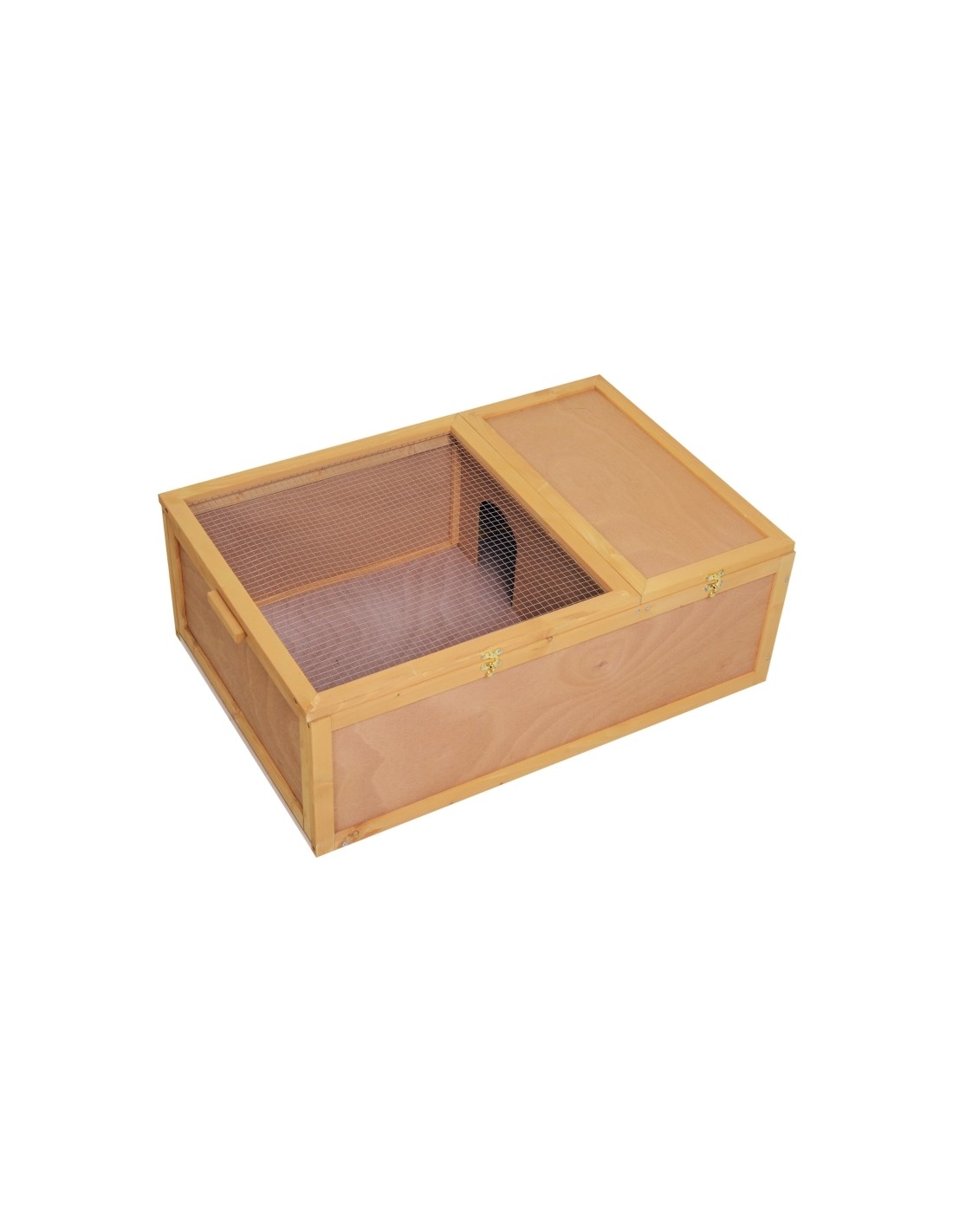 Transportkasse udført i et design af fyrretræ. Transportkassen kan anvendes til mindre gnavere eller skildpadder for en kortere periode, og måler 94 x 63 x 33 cm.