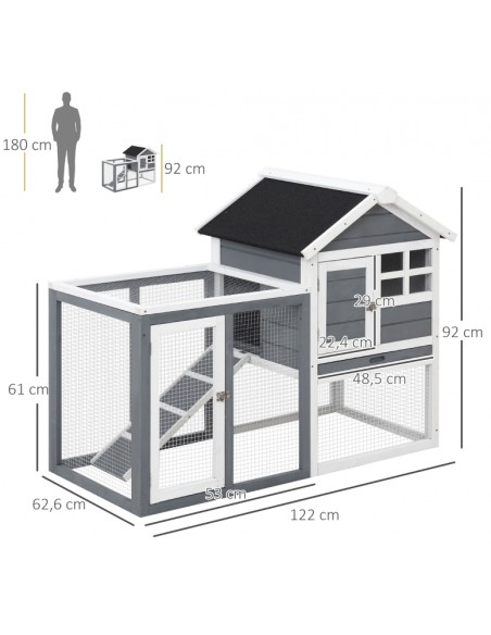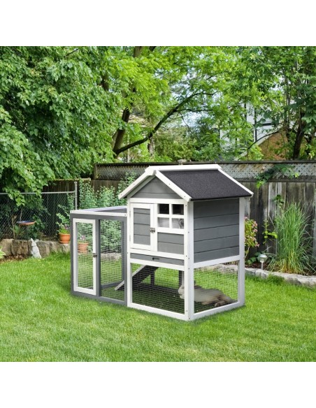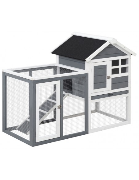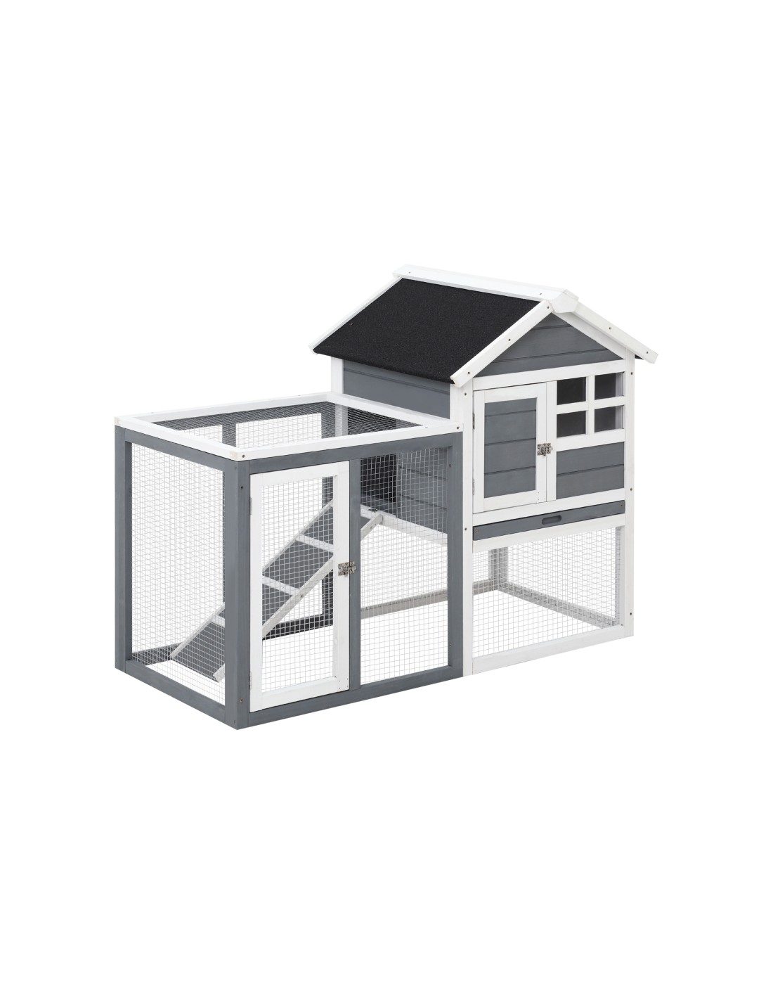 Kaninbur i fyrretræ 122 x 62,6 x 92 cm - Hvid/Grå