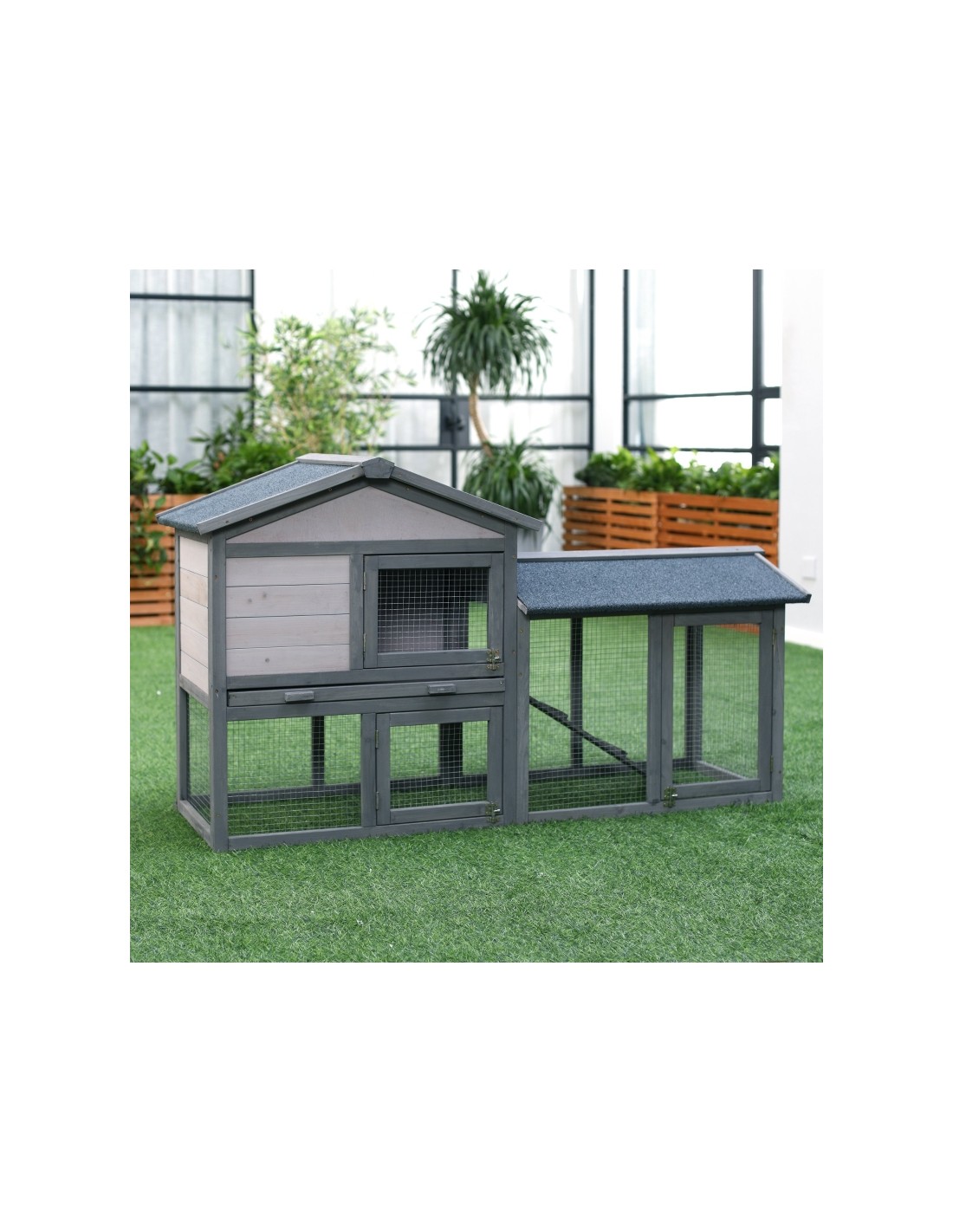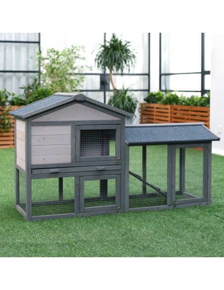 Kaninbur i fyrretræ 147 x 54 x 84 cm - Grå