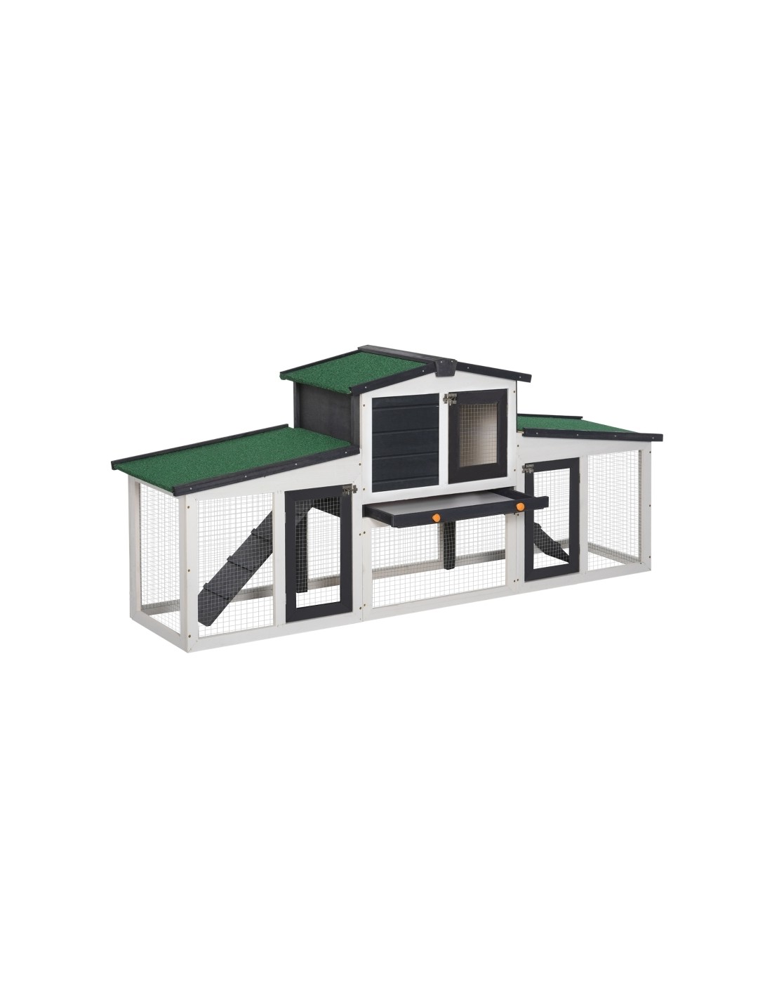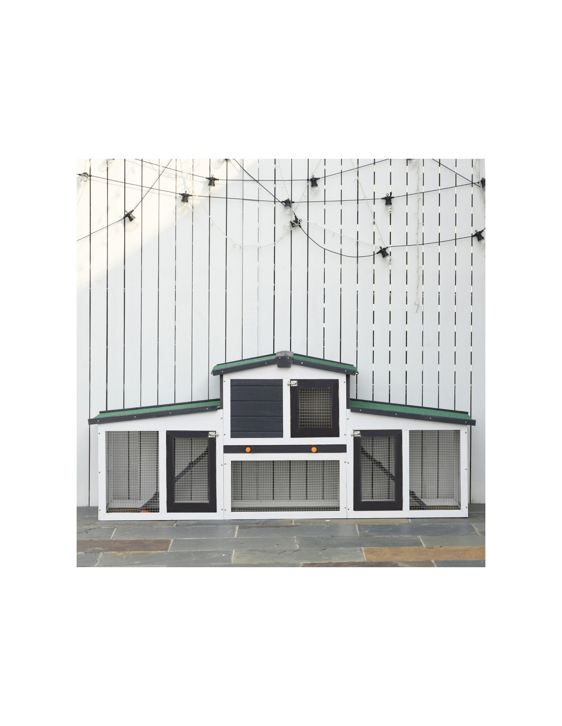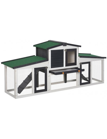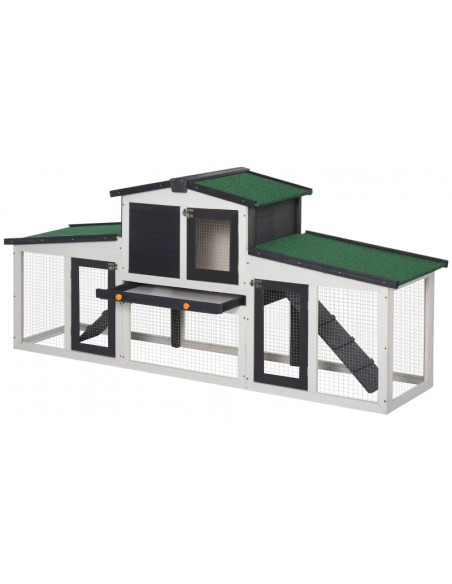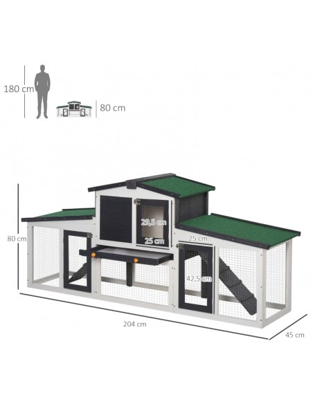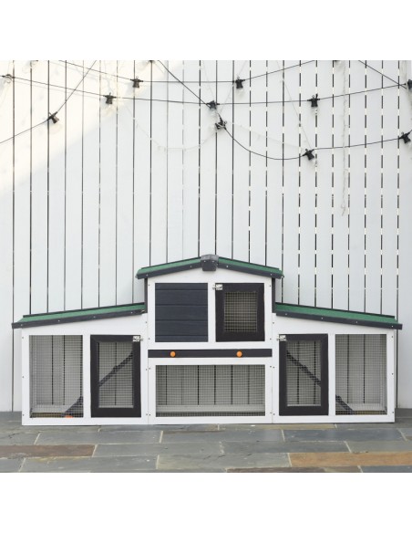 Dværgkaninbur i fyrretræ 204 x 45 x 80 cm - Hvid/Sort