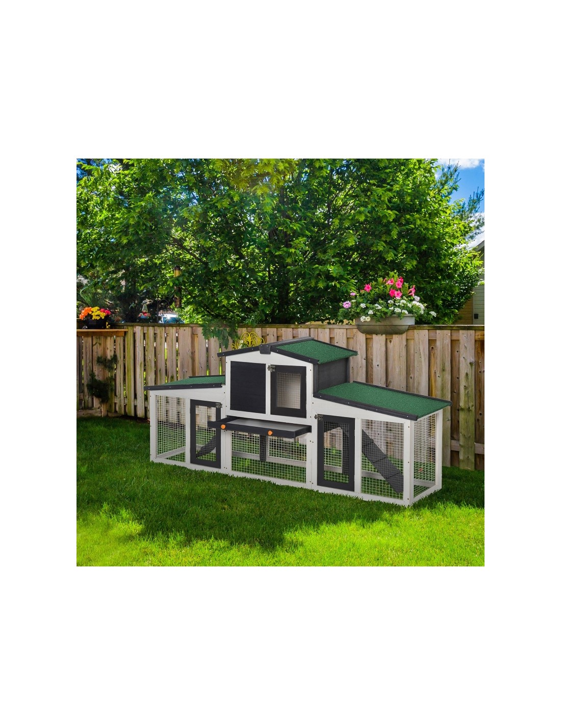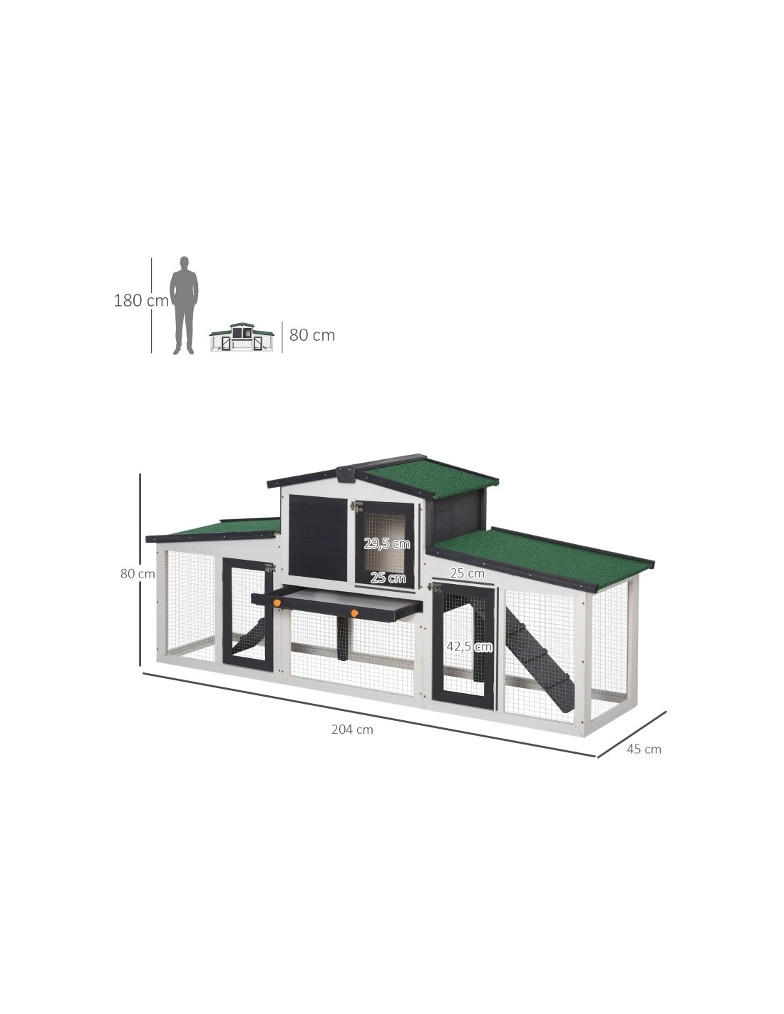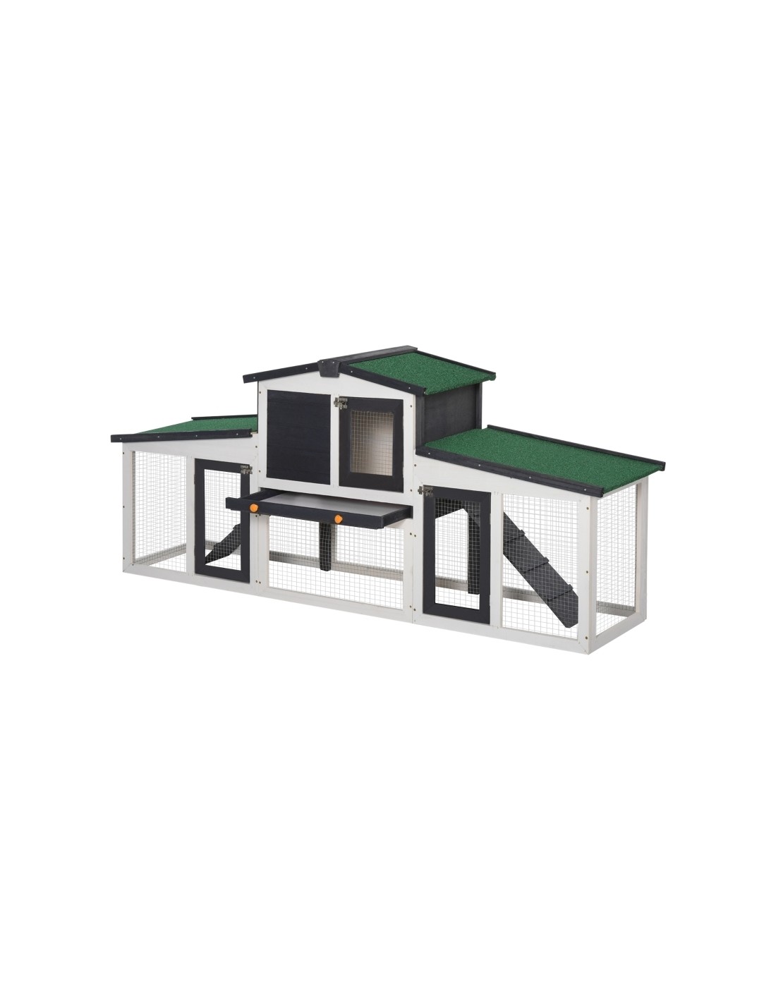 Dværgkaninbur i fyrretræ 204 x 45 x 80 cm - Hvid/Sort