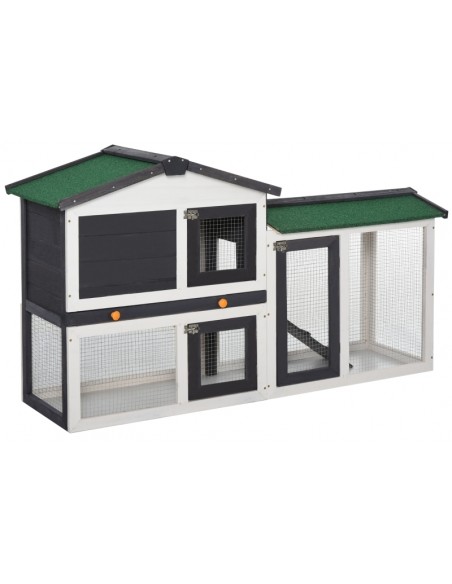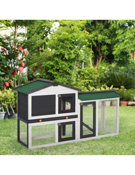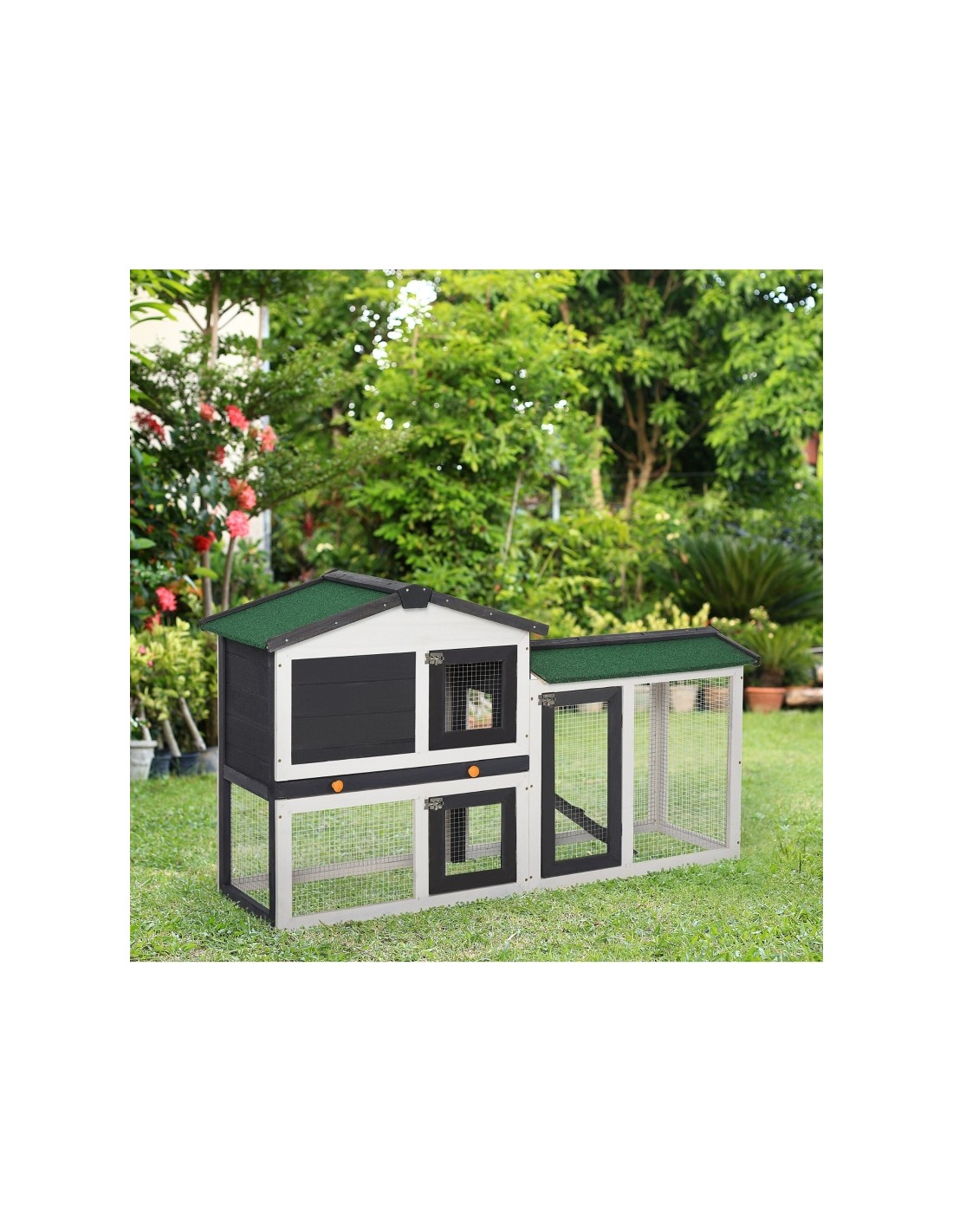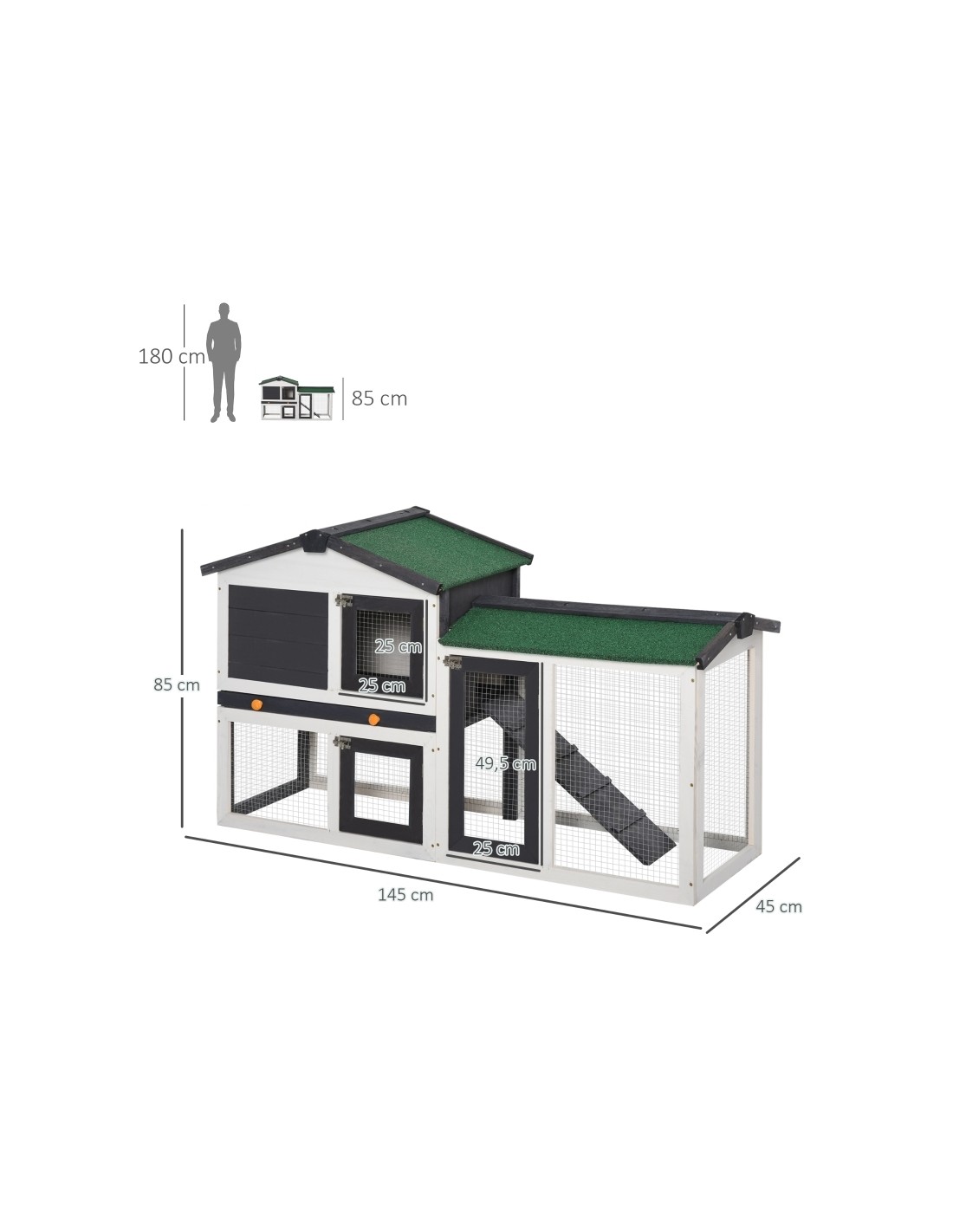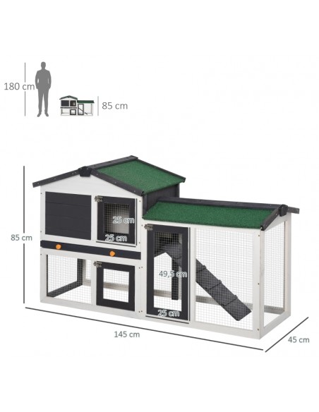 Dværgkaninbur i fyrretræ 145 x 45 x 85 cm - Hvid/Sort