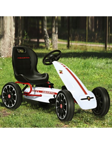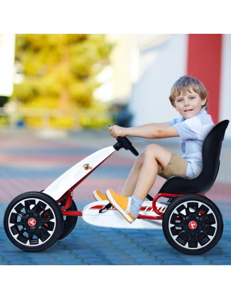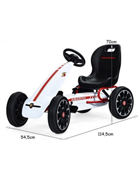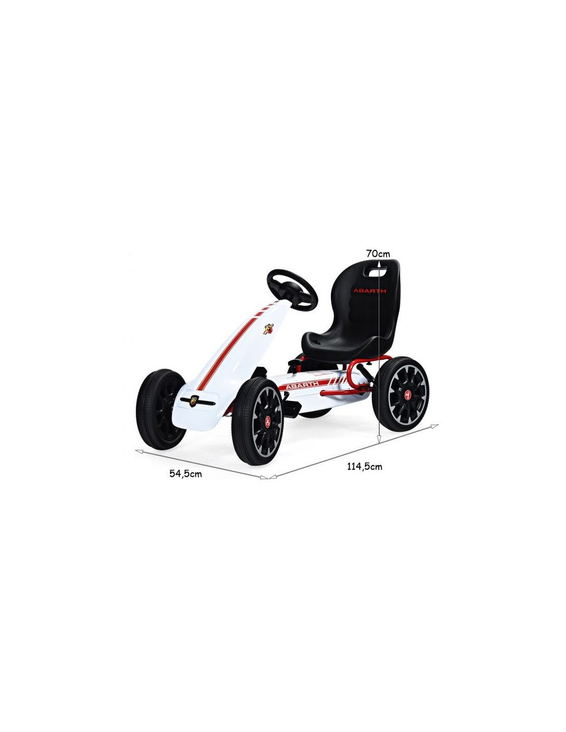 Gokart udført i et design af hvid kunststof og metal. Gokarten måler 114,5 cm i længden og 54,5 cm i bredden og har en max. belastning på 25 kg.
