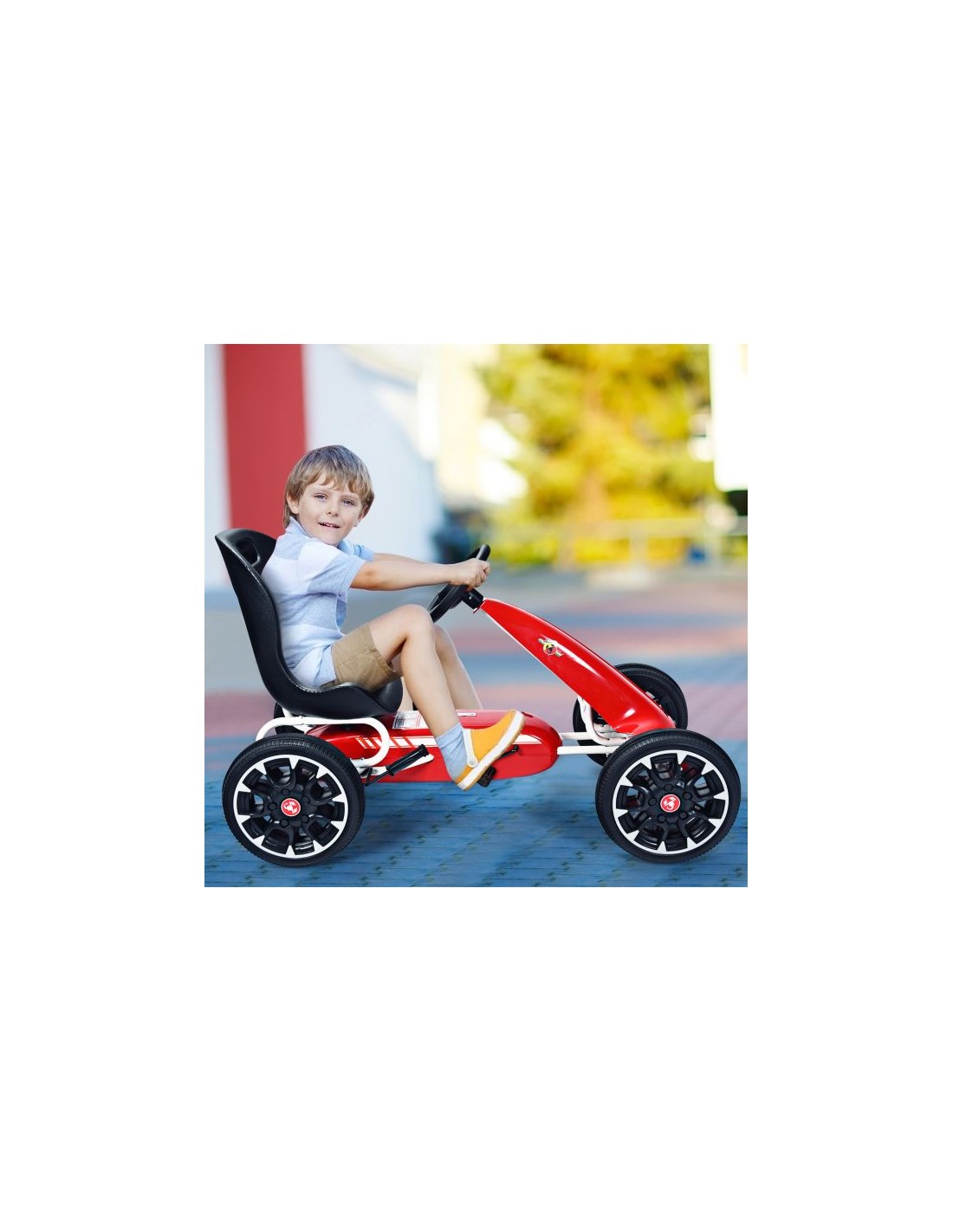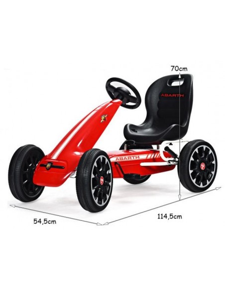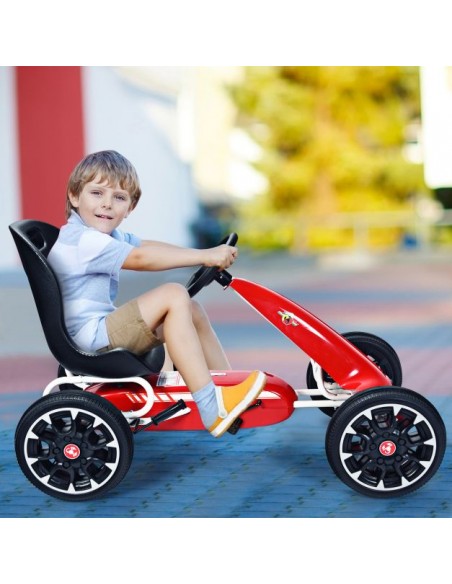 Gokart udført i et design af rød kunststof og metal. Gokarten måler 114,5 cm i længden og 54,5 cm i bredden og har en max. belastning på 25 kg.
