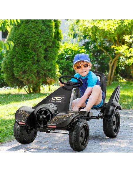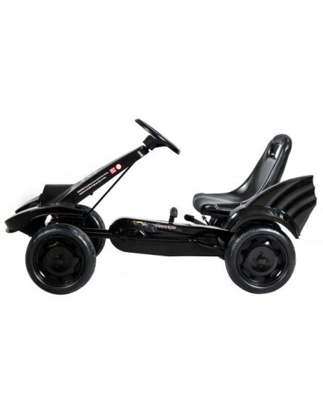 Gokart udført i et design af sort kunststof og metal. Gokarten måler 112 cm i længden og 61 cm i bredden og har en max. belastning på 30 kg.