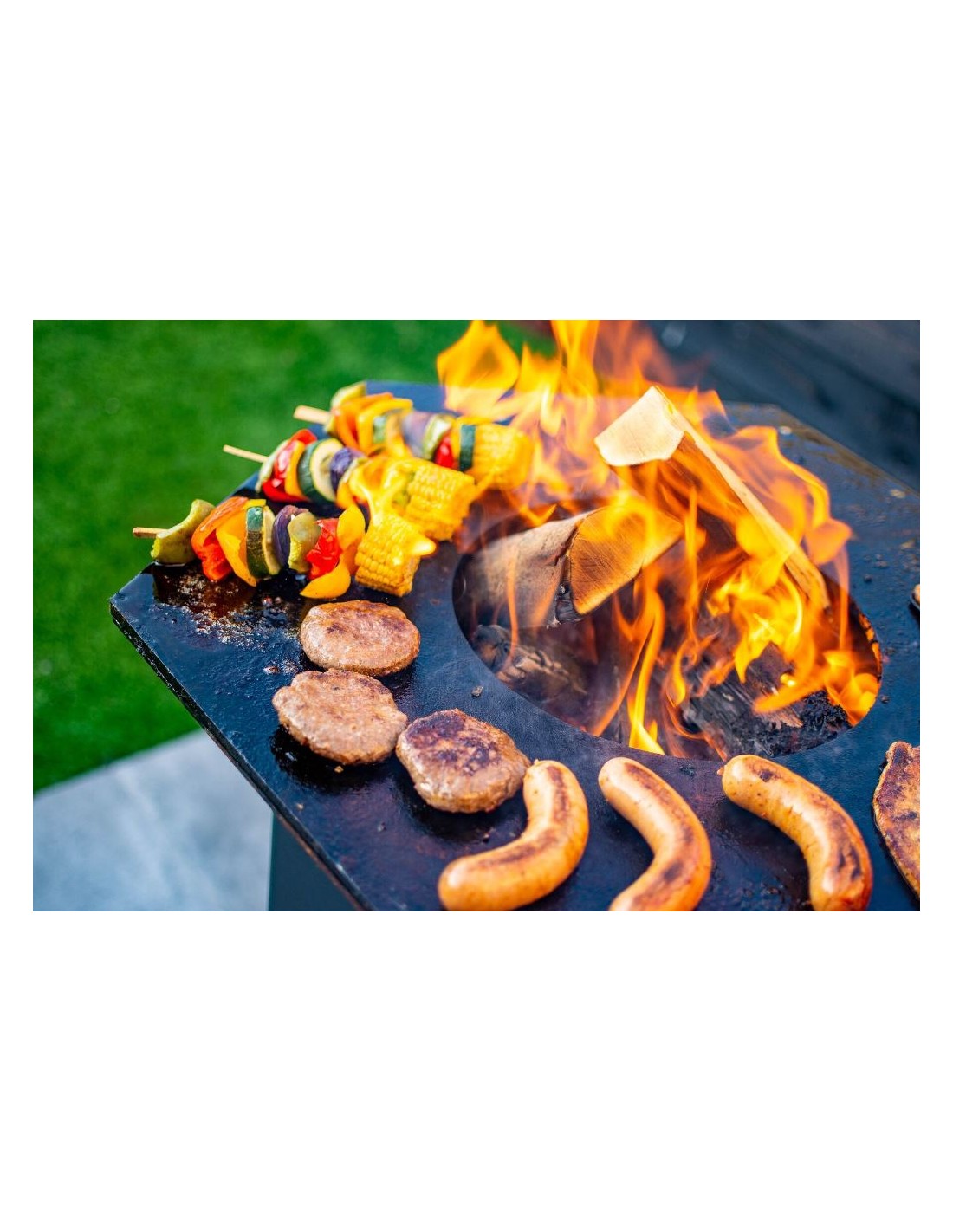 Det unikke design gør grillen til et 3 i 1 produkt. Du kan bruge den som grill, men også som ildskål, og de moderne rene linjer gør også grillen smuk som kunstværk og blikfang. På grund af sit unikke design passer grillen ind i enhver have eller terrasse.