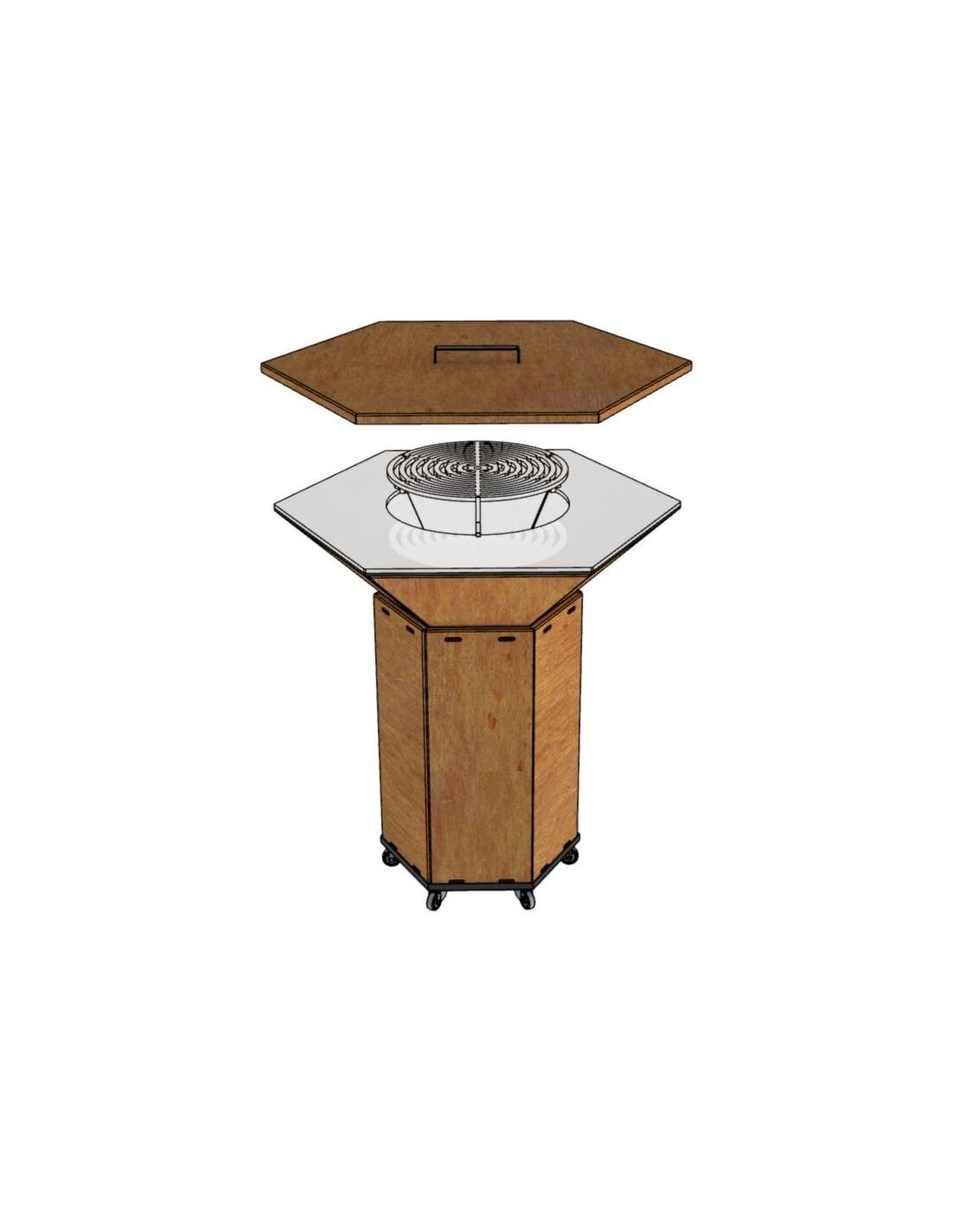 Grillen er lavet af Corten-A stålplade af høj kvalitet, der har den unikke egenskab, at den danner et meget tæt oxidlag (rustlag), som er umuligt at ruste igennem. På grund af det tætte oxidlag er det dybere materiale afskærmet for ilt, så oxidationen bremses betydeligt, mens korrosionen fortsætter. Grillen i cortenstål leveres urustet, i den grå metalfarve. Det brune/orange rustlag dannes inden for få uger til et par måneder og ingen behandling er påkrævet. Selve grillpladen er fremstillet i en speciel carbon stål.