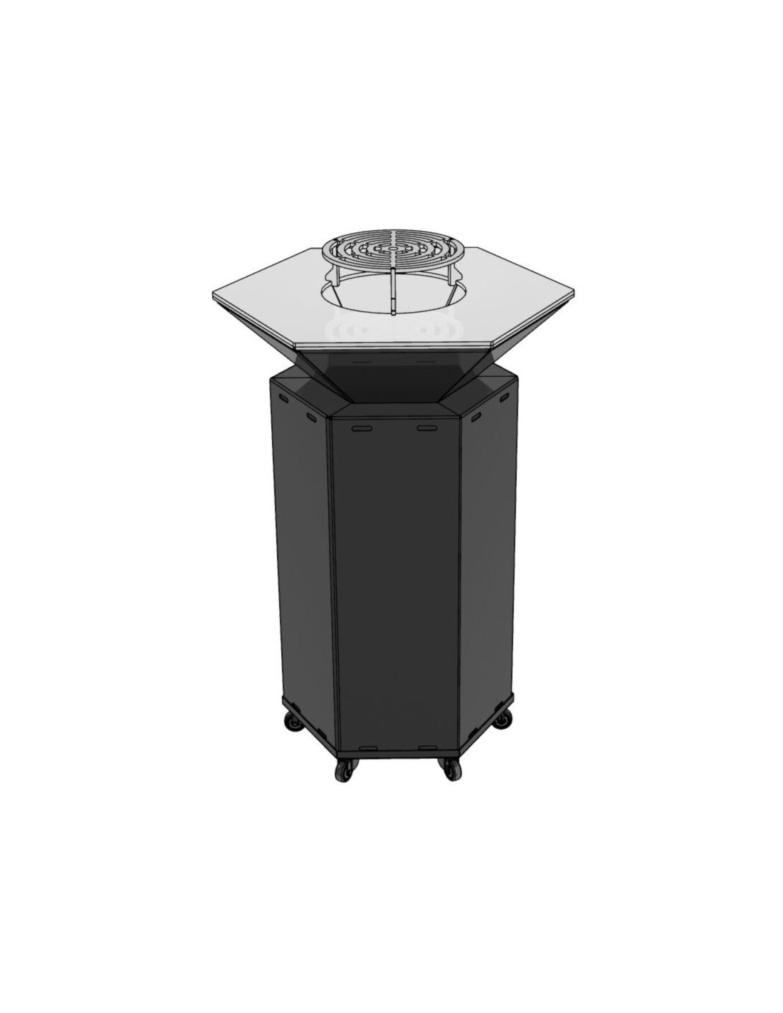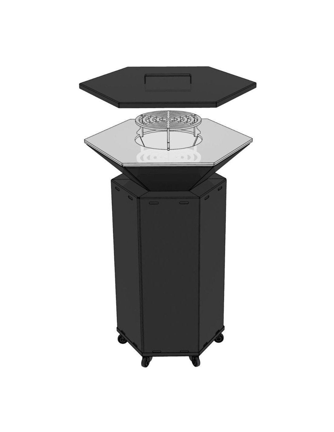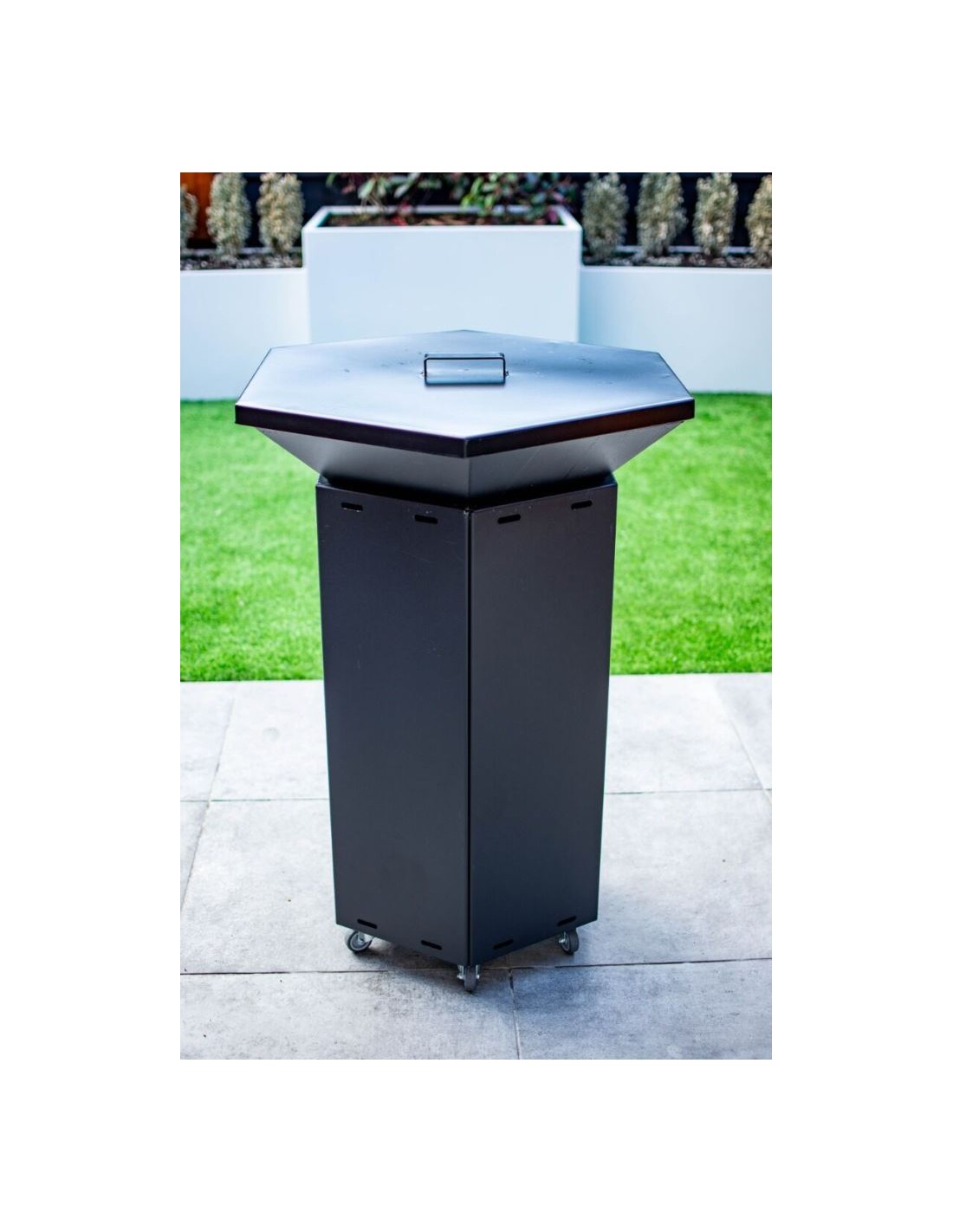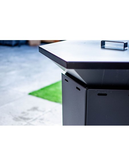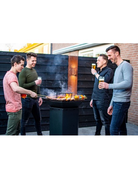 Det unikke design gør grillen til et 3 i 1 produkt. Du kan bruge den som grill, men også som ildskål, og de moderne rene linjer gør også grillen smuk som kunstværk og blikfang. På grund af sit unikke design passer grillen ind i enhver have eller terrasse.