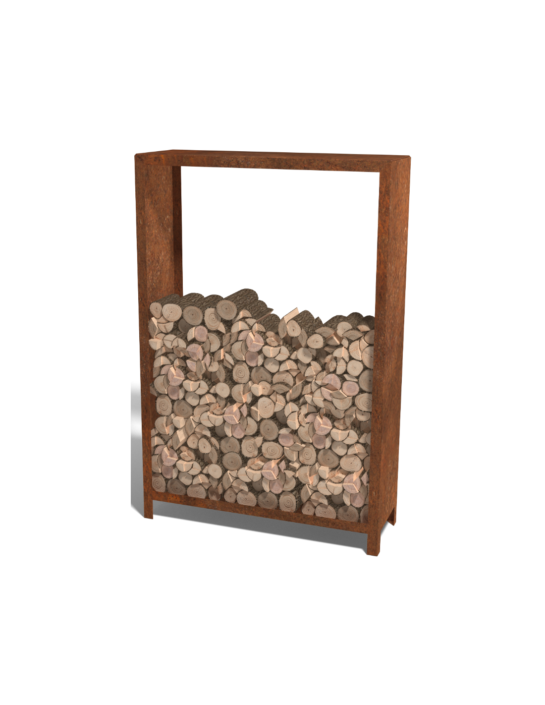 Brændereol udført i et smukt design af stål. Reolen måler 180 cm i højden og 120 cm i bredden.