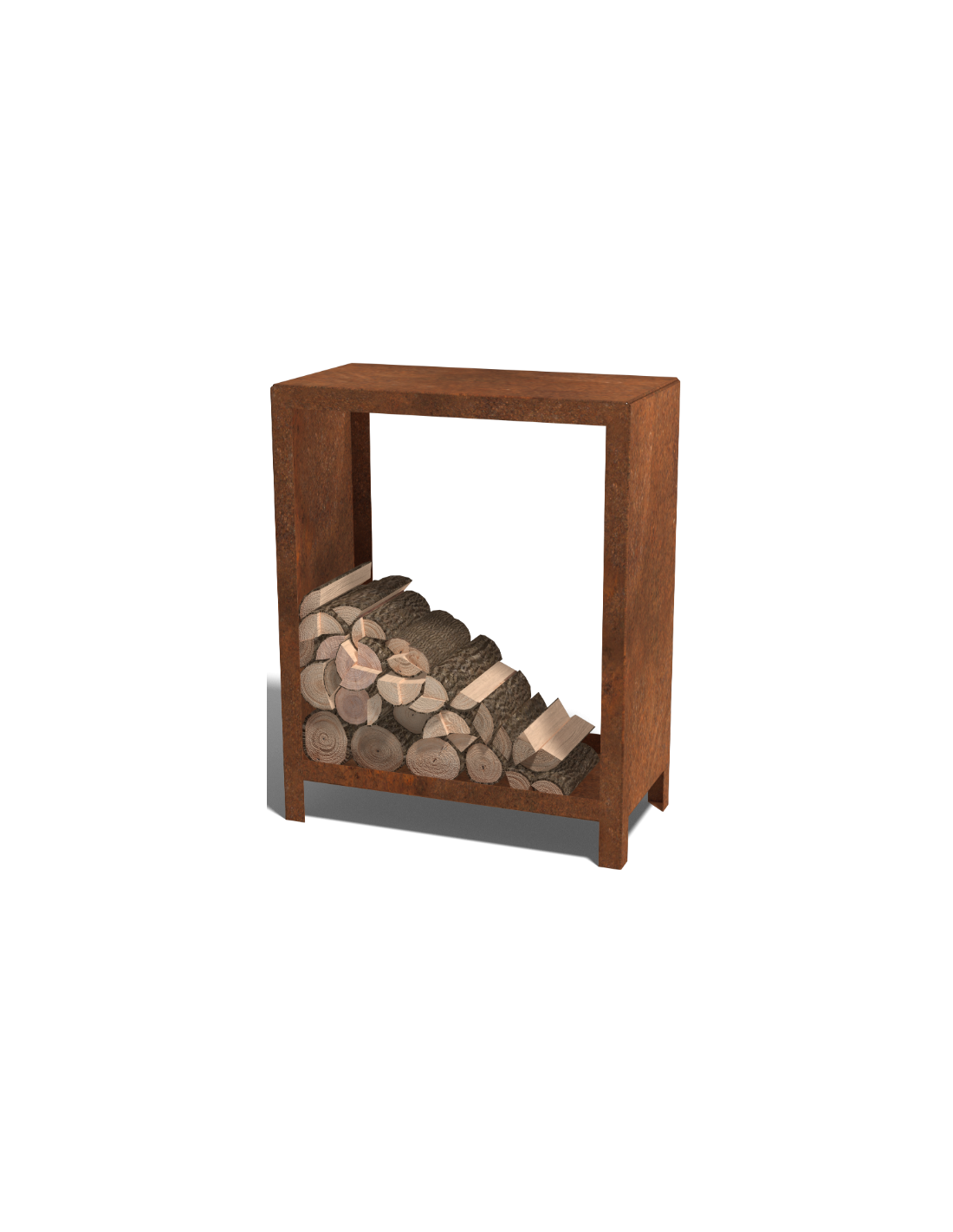 Brændereol udført i et smukt design af stål. Reolen måler 100 cm i højden og 80 cm i bredden.