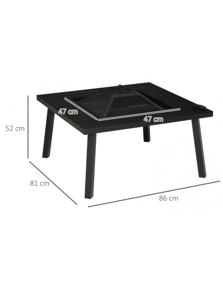 Ildbord i stål H52 x 81 x 86 cm - Sort