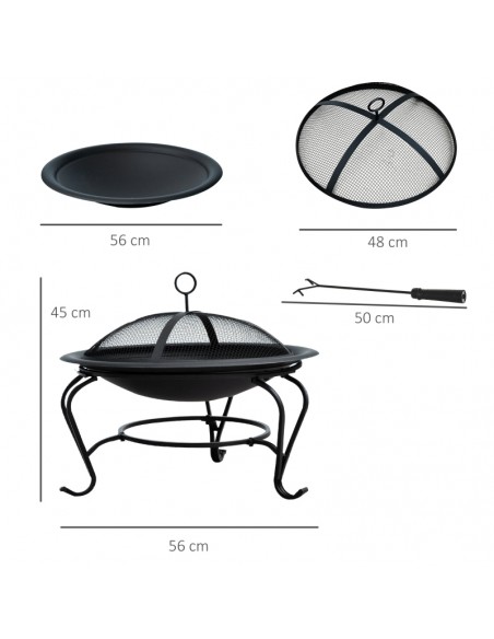 Ildsted udført i et design af sortlakeret metal, med grill riste og tang. Ildstedet måler 45 cm i højden og 56 cm i bredde og dybde.