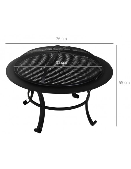 Ildsted udført i et design af sortlakeret metal, med grill riste og tang. Ildstedet måler 55 cm i højden og 76 cm i bredde og dybde.
