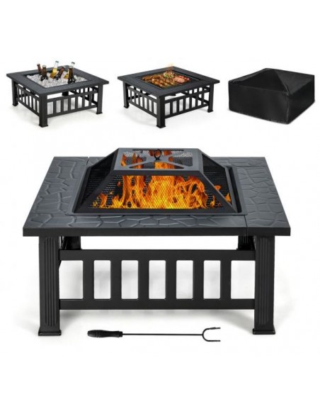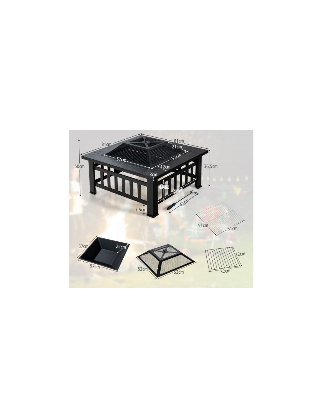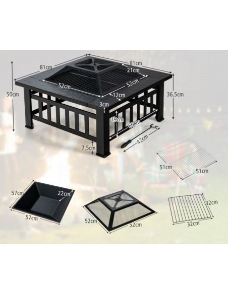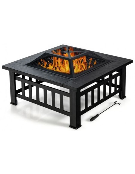 Ildsted udført i et design af sortlakeret stål. Ildstedet måler 36,5 - 50 cm i højden og 81 x 81 cm i bredde og dybde.