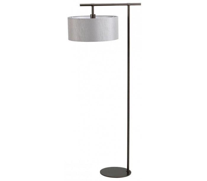 Balance gulvlampe fra britiske Elstead. Lampen måler 161,6 cm i højden og leveres til europæisk standard til 1 x E27 lyskilde. Lampen er udført i et design af mørkebrunlakeret stål og grå tekstil.