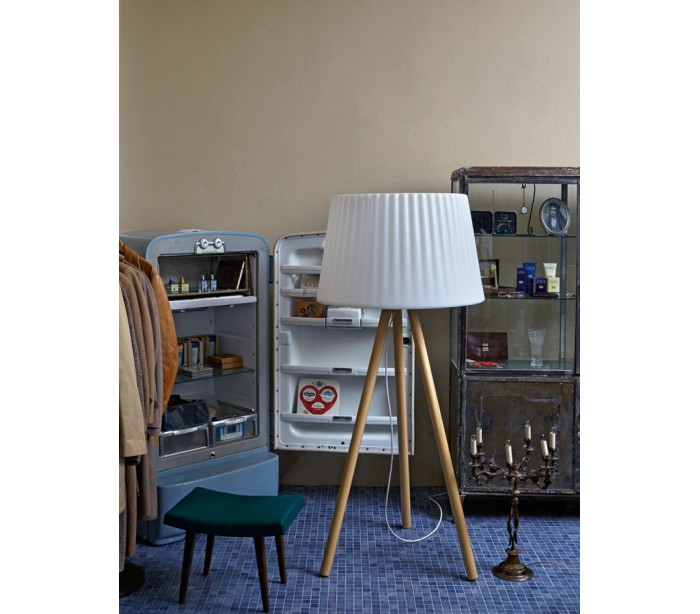 AGATA indendørs gulvlampe i et anderledes design, fremstillet i Poleasy materiale og med ben i massiv træ. Lampen måler 180 cm i højden og 80 cm i diameter. Lampen er designet af MoreDesign.