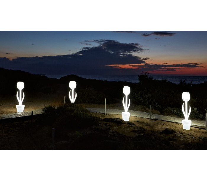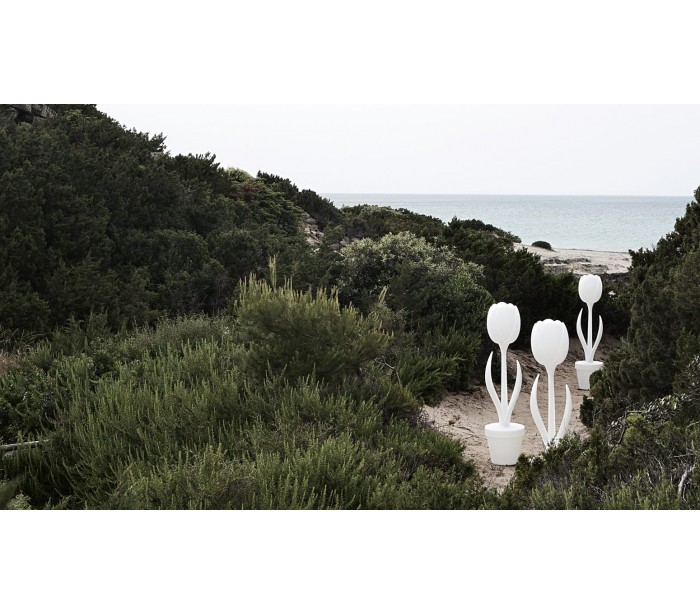 TULIP XL indendørs gulvlampe i et anderledes design, fremstillet i Poleasy materiale. Lampen måler 151 cm i højden og 37 cm i diameter. Lampen er designet af MoreDesign.