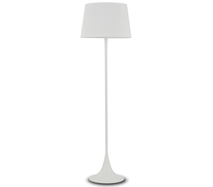 LONDON gulvlampe i et moderne design fremstillet i hvidlakeret metal og med skærm i hvid tekstil. Lampen måler 174 cm i højden og 50 cm i skærmdiameter og anvender 1 x E27 lyskilde (ekskl.).