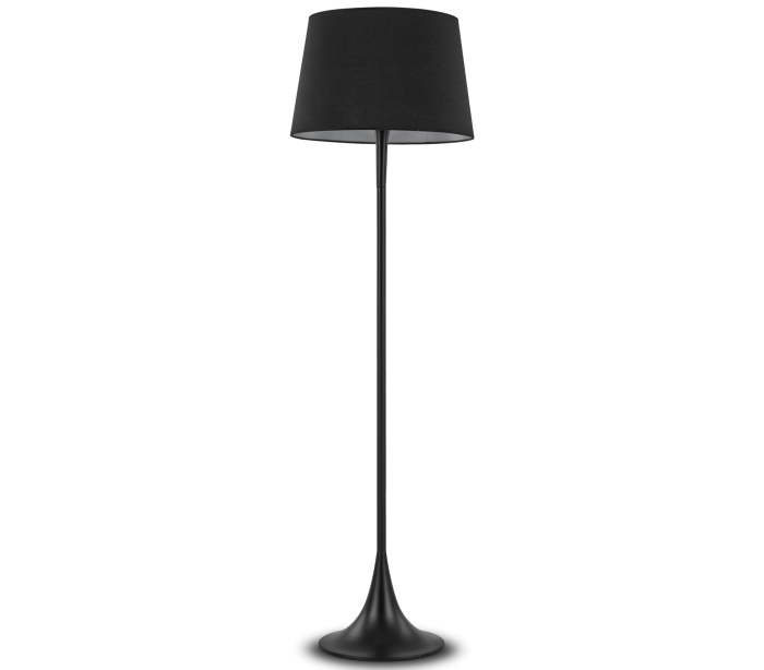 LONDON gulvlampe i et moderne design fremstillet i sortlakeret metal og med skærm i sort tekstil. Lampen måler 174 cm i højden og 50 cm i skærmdiameter og anvender 1 x E27 lyskilde (ekskl.).