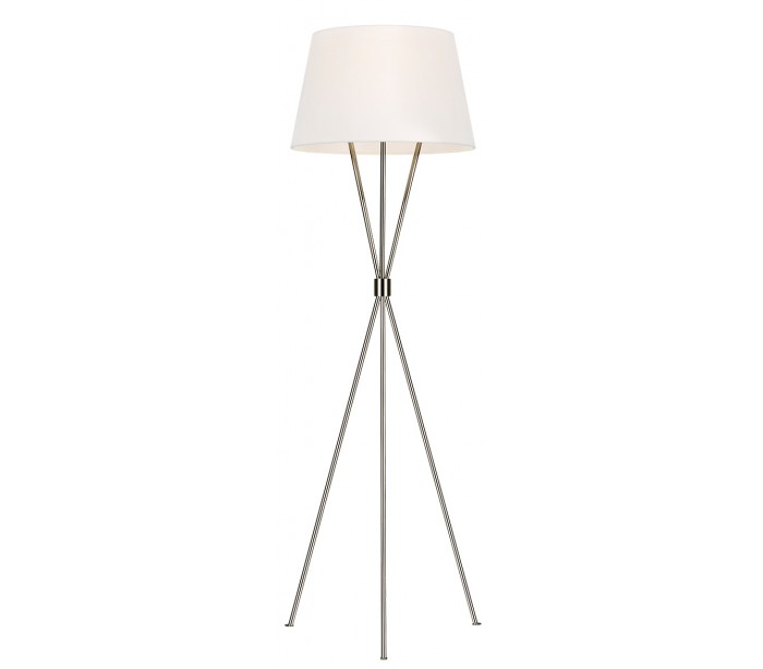 Penny gulvlampe i et moderne design, fremstillet i poleret nikkellakeret stål og med skærm i hvid linned. Lampen måler 139,7 cm i højden, og anvender 1 x E27 lyskilde (Ekskl.).