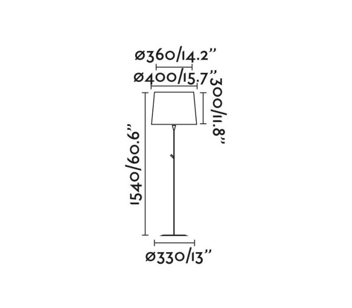 Gulvlampe i et moderne design, fremstillet i grøn tekstil og hvidlakeret metal. Lampen måler 154 cm i højden og anvender 1 x E27 lyskilde på max. 20W (Ekskl.). Lampen kan anvendes med LED lyskilde.