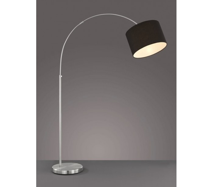 Gulvlampe i et moderne design af sort og mat nikkel. Lampeskærmen er fremstillet i tekstil og måler 30 cm i diameter. Lampen kan justeres i højden og måler fra 150 cm til 215 cm. Der kan anvendes LED lyskilde i lampen.