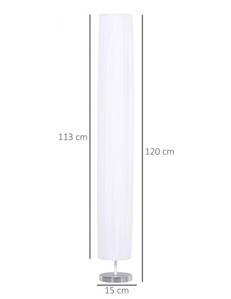 Gulvlampe udført i et design fremstillet i metal og polyester. Lampen måler 120 cm i højden og 15 cm i diameter og anvender 2 x E27 lyskilder (Ekskl.).