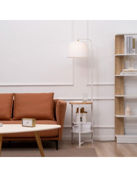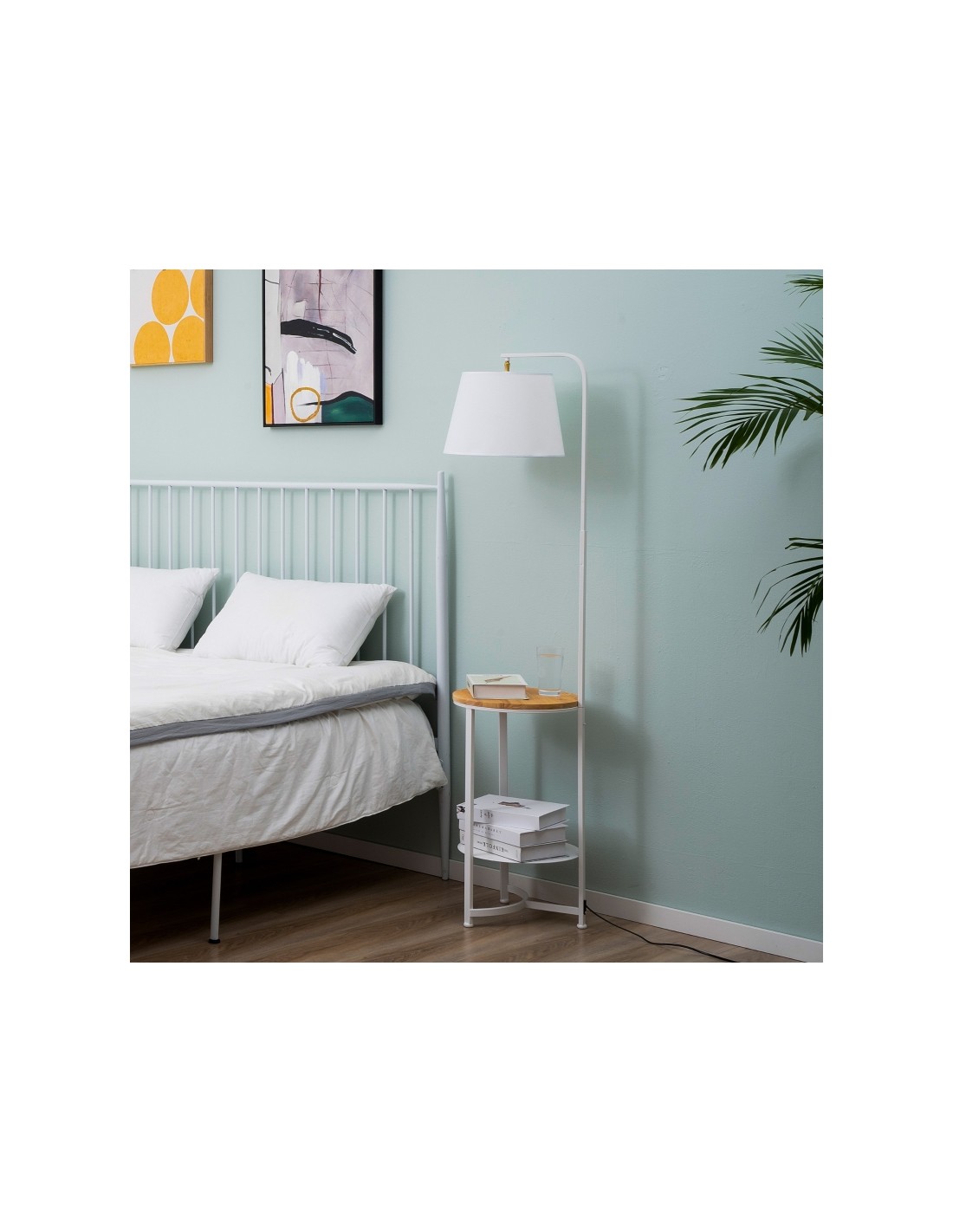 Gulvlampe i metal og tekstil H162 cm 1 x E27 - Hvid/Natur