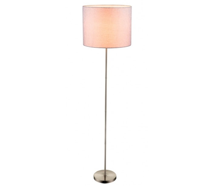 Gulvlampe fremstillet i et design med skærm i grå tekstil og med stander i mat nikkel. Lampeskærmen måler 40 cm i diameter og 31 cm i højden, og selve lampens totalhøjde udgør 160 cm. Lampen benytter 1 x E27 lyskilde på max 60W (Ekskl.).
