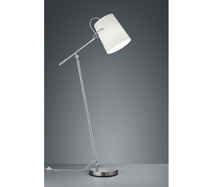 Gulvlampe i et moderne design med justerbart stel og lampehoved. Lampen måler 155 cm i højden (max.) og skærmen måler 30 cm i diameter. Lampen benytter 1 x E27, max. 60W lyskilde (ekskl.).