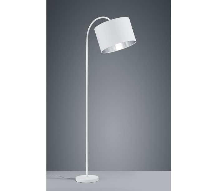 Gulvlampe i et moderne design med skærm i tekstil. Lampen måler 155 cm i højden og skærmen måler 35 cm i diameter. Lampen benytter 1 x E27, max. 60W lyskilde (ekskl.). Justerbar skærmarm.