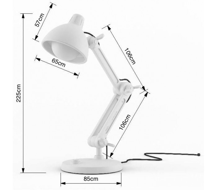 Gigantisk gulvlampe i et moderne design, fremstillet i genanvendt PE Plast, der holder i mange år og kan nedbrydes. Fyld lampens fod op med sand eller vand for bedre stabilitet. Anvend lampen både indendørs såvel som udendørs, men undlad dog at lade lampen stå ude i fugtigt vejr. Lampen måler op til 225 cm i højden, hvilket justeres i ønsket højde via de store vinger på flexarmen. Skærmen måler hele 65 cm i diameter. Lampen benytter 1 x E27, max. 60W lyskilde (ekskl.) - LED samt Philips Hue lyskilder kan anvendes.
