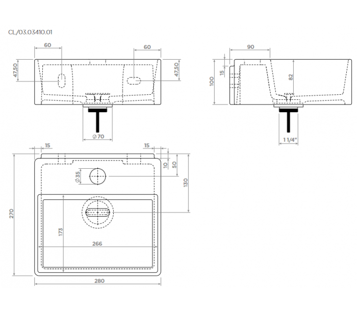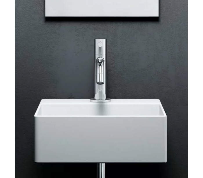 NEW FLUSH 1 Håndvask til montering enten på væg eller bord. Håndvasken er udført i et design af hvid højglans keramik. Håndvasken måler 10 cm i højden og 28 x 27 cm i bredde og dybde. Der er i denne håndvask et forboret hul til armatur. Monteringssæt samt bundventil medfølger.