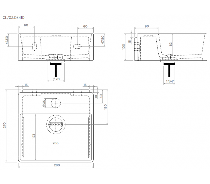 NEW FLUSH 1 Håndvask til montering enten på væg eller bord. Håndvasken er udført i et design af hvid højglans keramik. Håndvasken måler 10 cm i højden og 28 x 27 cm i bredde og dybde. Der er i denne håndvask ikke forboret hul til armatur. Monteringssæt samt bundventil medfølger.