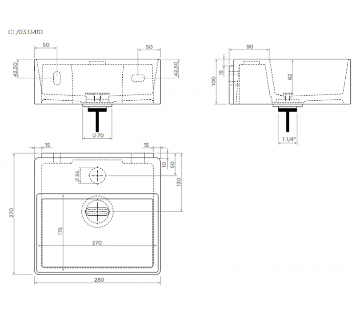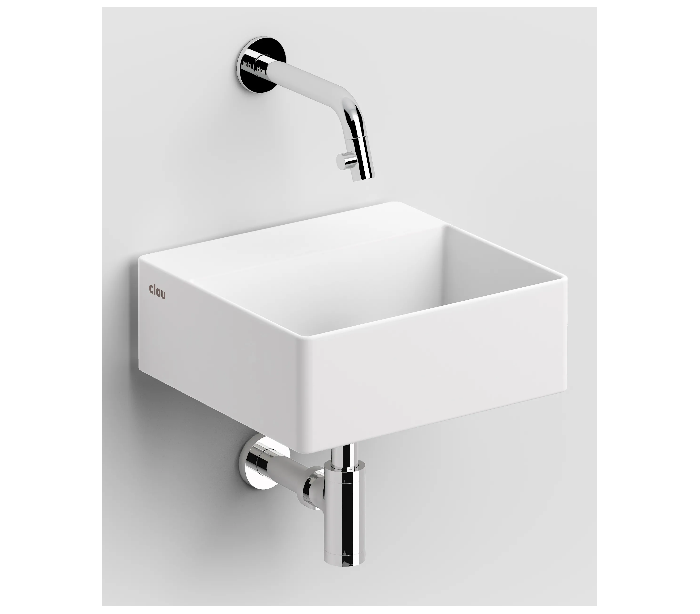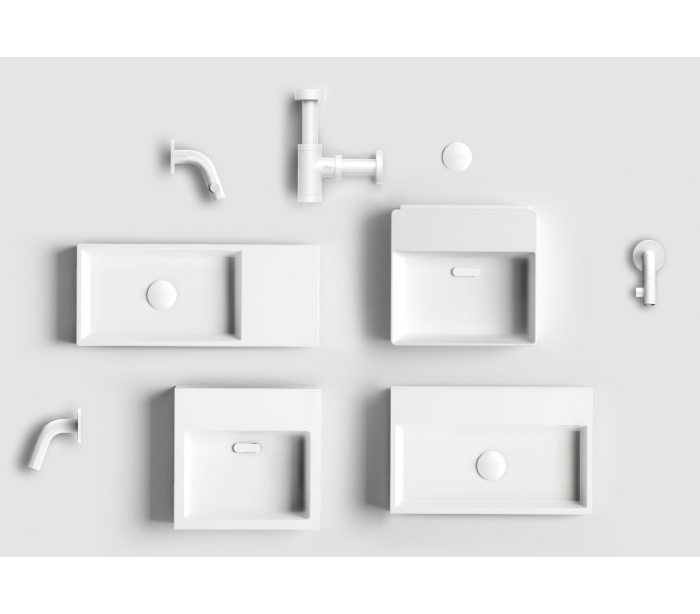 NEW FLUSH 1 Håndvask til montering enten på væg eller bord. Håndvasken er udført i et design af mat hvid aluite. Håndvasken måler 10 cm i højden og 28 x 27 cm i bredde og dybde. Der er i denne håndvask forberedt, men ikke forboret hul til armatur - kan undlades. Monteringssæt samt bundventil medfølger.