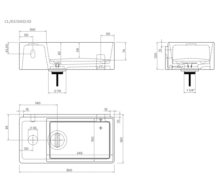 NEW FLUSH 3 Håndvask til montering enten på væg eller bord. Håndvasken er med bundplade og er udført i et design af mat hvid aluite. Håndvasken måler 10 cm i højden og 35 x 18 cm i bredde og dybde. Der er i denne håndvask forberedt, men ikke forboret hul til armatur - kan undlades. Monteringssæt samt bundventil medfølger.