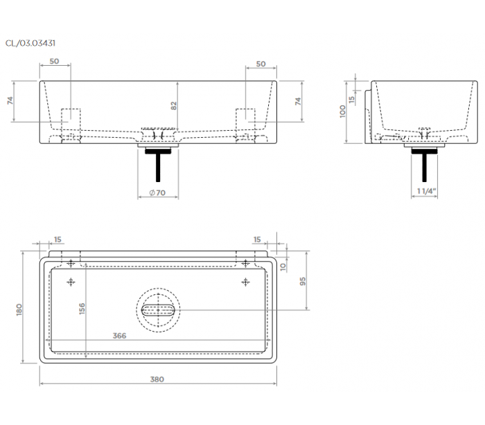 NEW FLUSH 3.1 Håndvask til montering enten på væg eller bord. Håndvasken er udført i et design af hvid højglans keramik. Håndvasken måler 10 cm i højden og 38 x 18 cm i bredde og dybde. Monteringssæt samt bundventil medfølger.