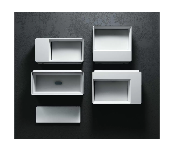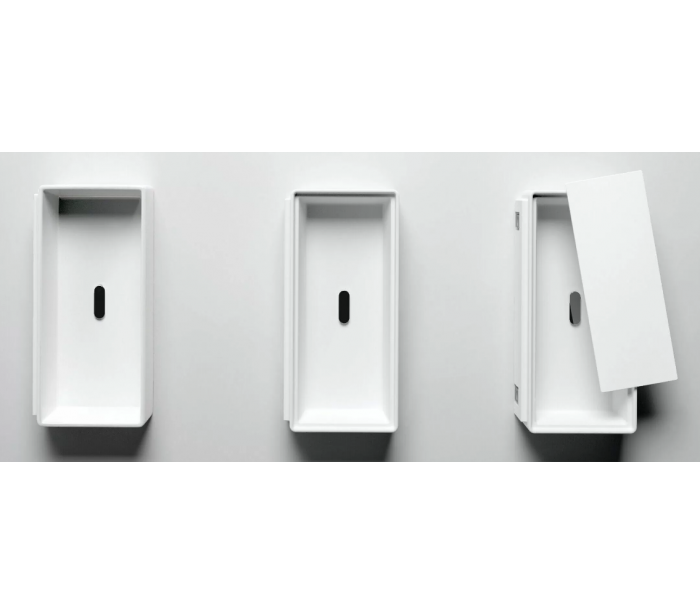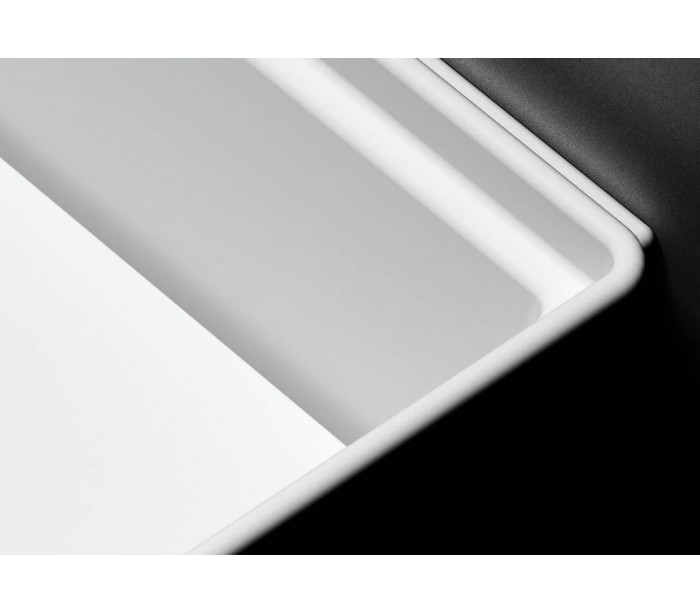 NEW FLUSH 3.1 Håndvask med bundplade, til montering enten på væg eller bord. Håndvasken er udført i et design af mat hvid aluite. Håndvasken måler 10 cm i højden og 38 x 18 cm i bredde og dybde. Monteringssæt samt bundventil medfølger.