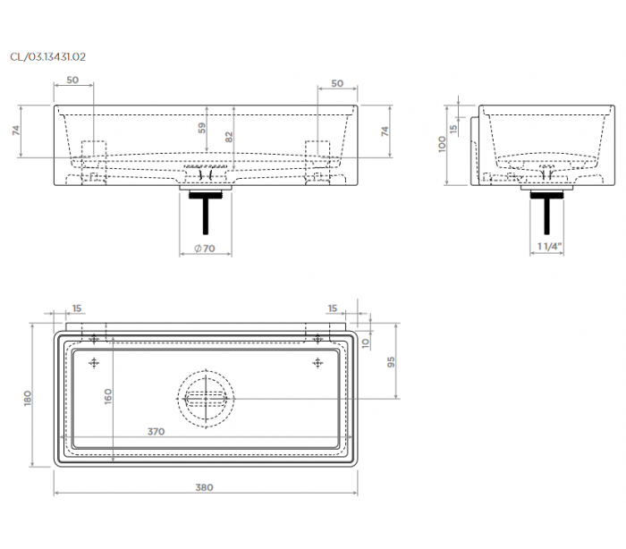 NEW FLUSH 3.1 Håndvask med bundplade 38 x 18 cm Aluite - Mat hvid
