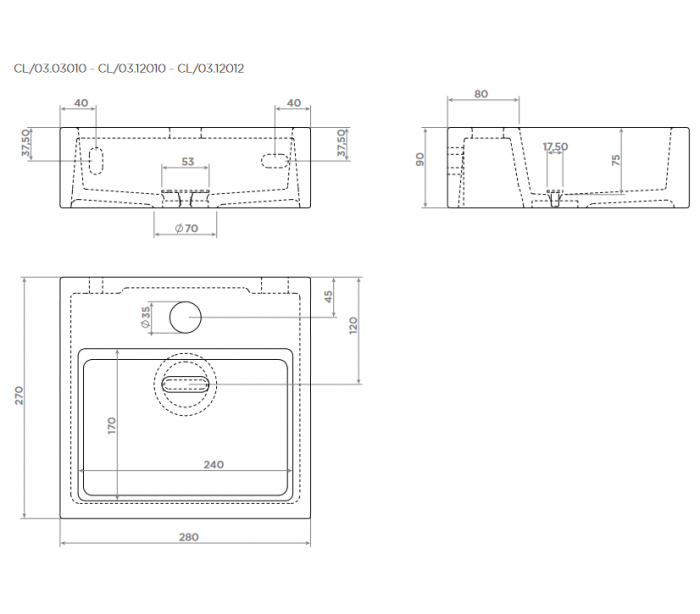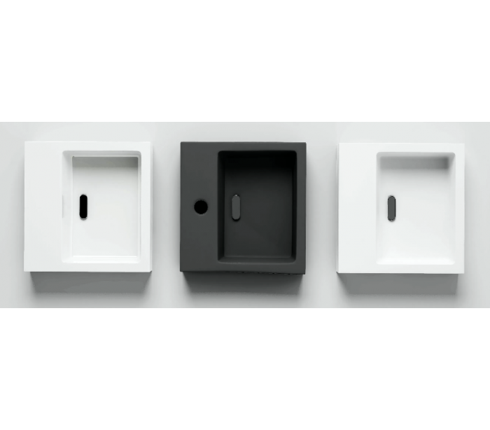 FLUSH 1 Håndvask til montering enten på væg eller bord. Håndvasken er udført i et design af hvid højglans keramik. Håndvasken måler 9 cm i højden og 28 x 27 cm i bredde og dybde. Der er i denne håndvask et forboret hul til armatur. Monteringssæt samt bundventil medfølger.