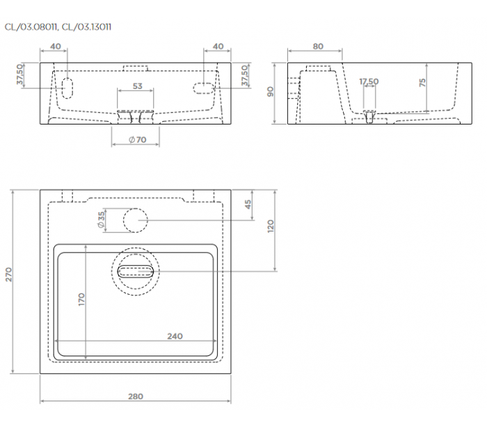 • Forberedt men ikke forboret armaturhul (kan blot undlades)
