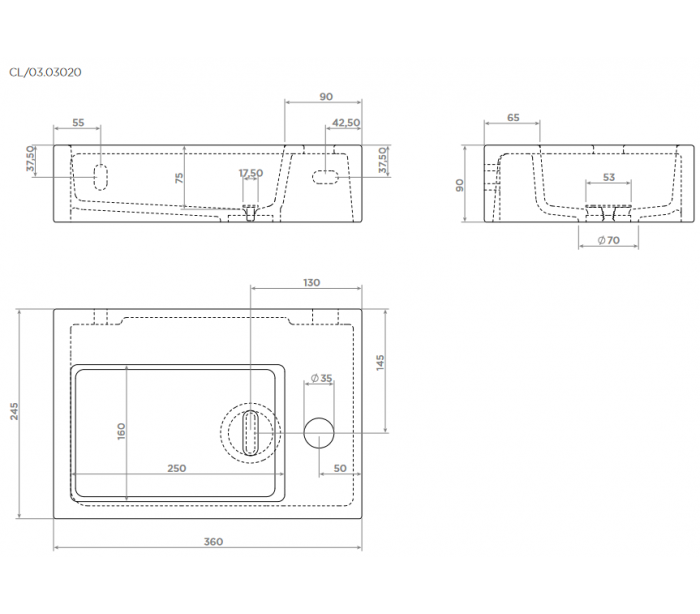 FLUSH 2 Håndvask til montering enten på væg eller bord. Håndvasken er udført i et design af hvid højglans keramik. Håndvasken måler 9 cm i højden og 36 x 24,5 cm i bredde og dybde. Der er i denne håndvask et forboret hul til armatur. Monteringssæt samt bundventil medfølger.
