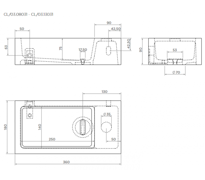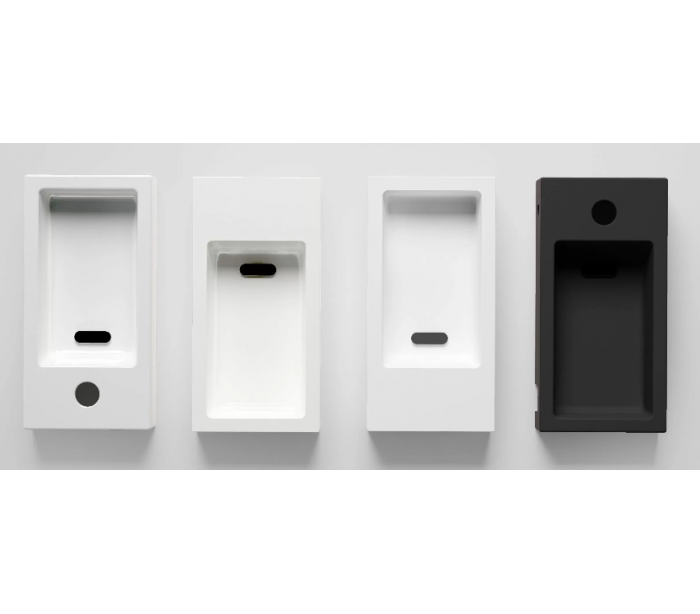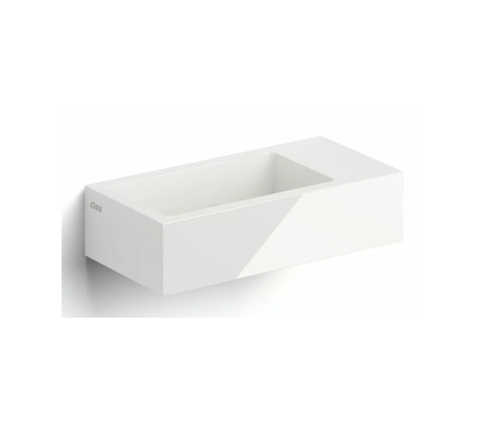 FLUSH 3 Håndvask til montering enten på væg eller bord. Håndvasken er udført i et design af hvid højglans mineralkomposit. Håndvasken måler 9 cm i højden og 36 x 18 cm i bredde og dybde. Der er i denne håndvask forberedt, men ikke forboret hul til armatur - kan undlades. Monteringssæt samt bundventil medfølger.