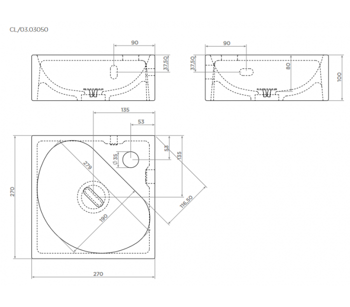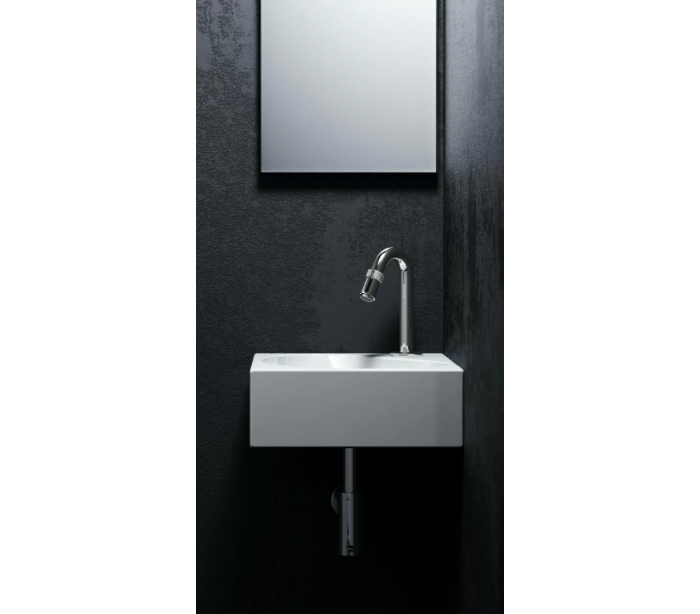 FLUSH 5 Hjørne håndvask til montering enten på væg eller bord. Håndvasken er udført i et design af hvid højglans keramik. Håndvasken måler 10 cm i højden og 27 x 27 cm i bredde og dybde. Der er i denne håndvask et forboret hul til armatur. Monteringssæt samt bundventil medfølger.