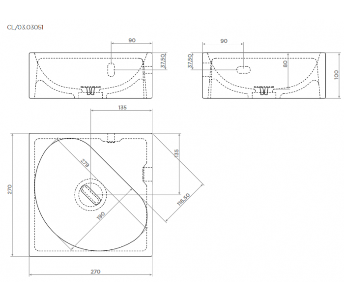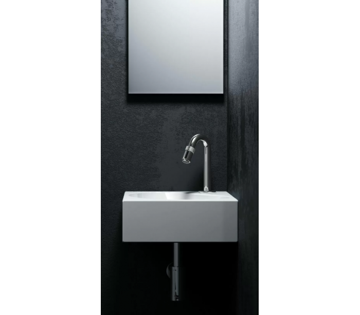 FLUSH 5 Hjørne håndvask til montering enten på væg eller bord. Håndvasken er udført i et design af hvid højglans keramik. Håndvasken måler 10 cm i højden og 27 x 27 cm i bredde og dybde. Der er i denne håndvask ikke et forboret hul til armatur. Monteringssæt samt bundventil medfølger.