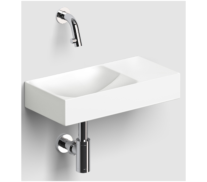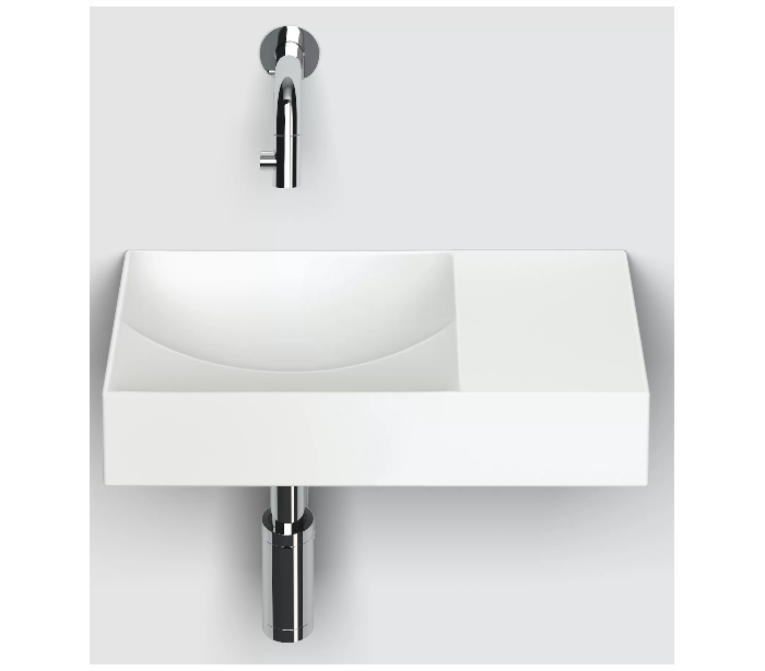 VALE Håndvask til montering enten på væg eller bord. Håndvasken er udført i et design af mat hvid keramik. Håndvasken måler 7 cm i højden og 38 x 19 cm i bredde og dybde. Der er i denne håndvask ikke et forboret hul til armatur. Monteringssæt samt integreret afløb medfølger.