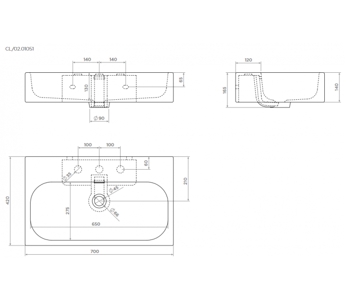 MATCH ME Håndvask til montering enten på væg eller bord. Håndvasken er udført i et design af hvid højglans keramik. Håndvasken måler 14 cm i højden og 70 x 42 cm i bredde og dybde. Der er i denne håndvask forberedt, men ikke forboret hul til armatur - kan undlades. Monteringssæt medfølger.