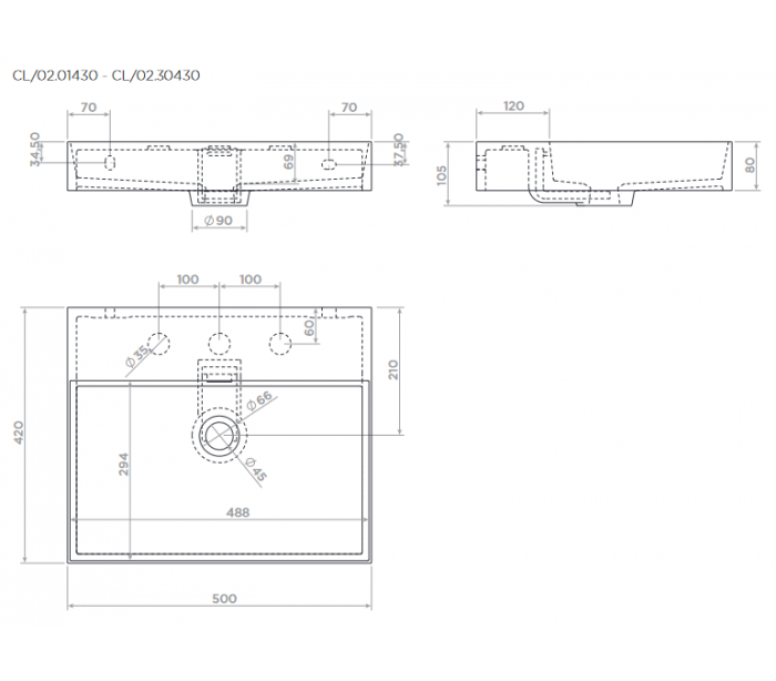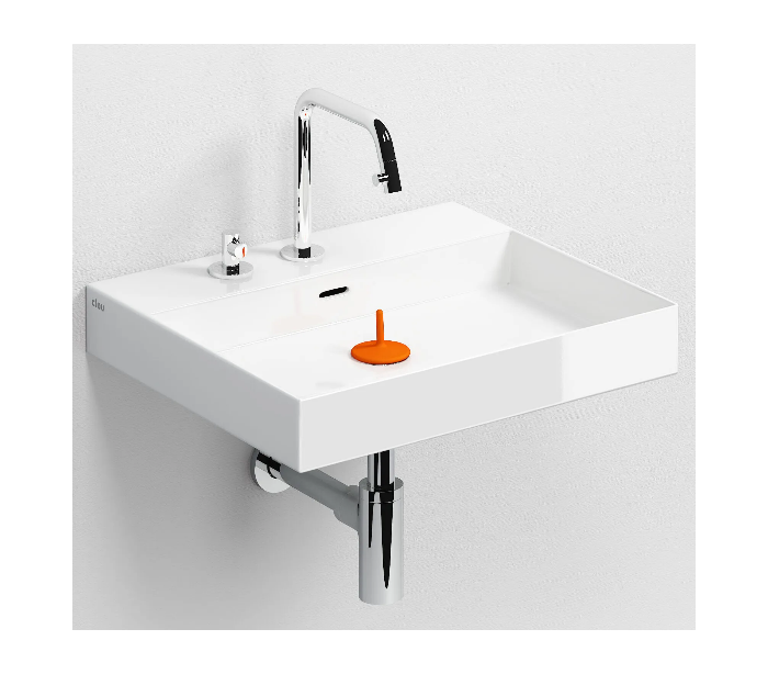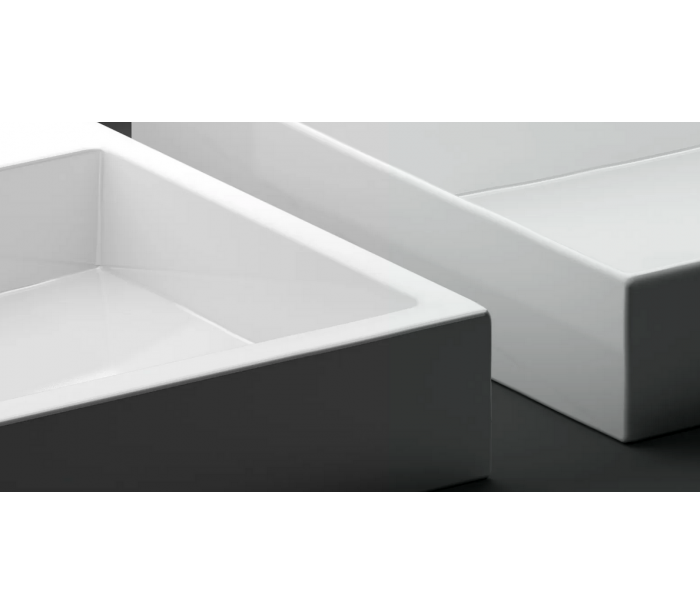 NEW WASH ME Håndvask til montering enten på væg eller bord. Håndvasken er udført i et design af hvid højglans keramik. Håndvasken måler 8 cm i højden og 50 x 42 cm i bredde og dybde. Der er i denne håndvask ikke et forboret hul til armatur. Monteringssæt medfølger.