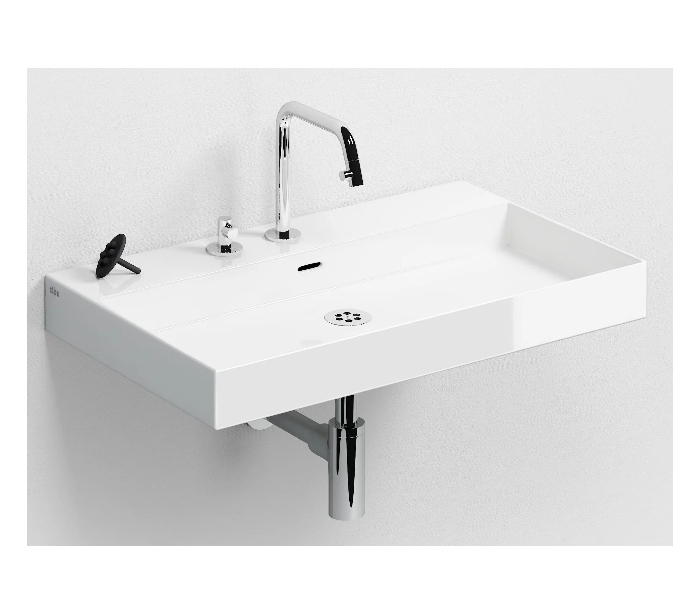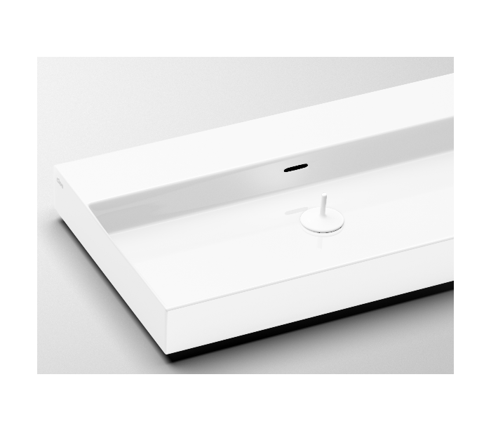 NEW WASH ME Håndvask til montering enten på væg eller bord. Håndvasken er udført i et design af hvid højglans keramik. Håndvasken måler 8 cm i højden og 70 x 42 cm i bredde og dybde. Der er i denne håndvask ikke et forboret hul til armatur. Monteringssæt medfølger.